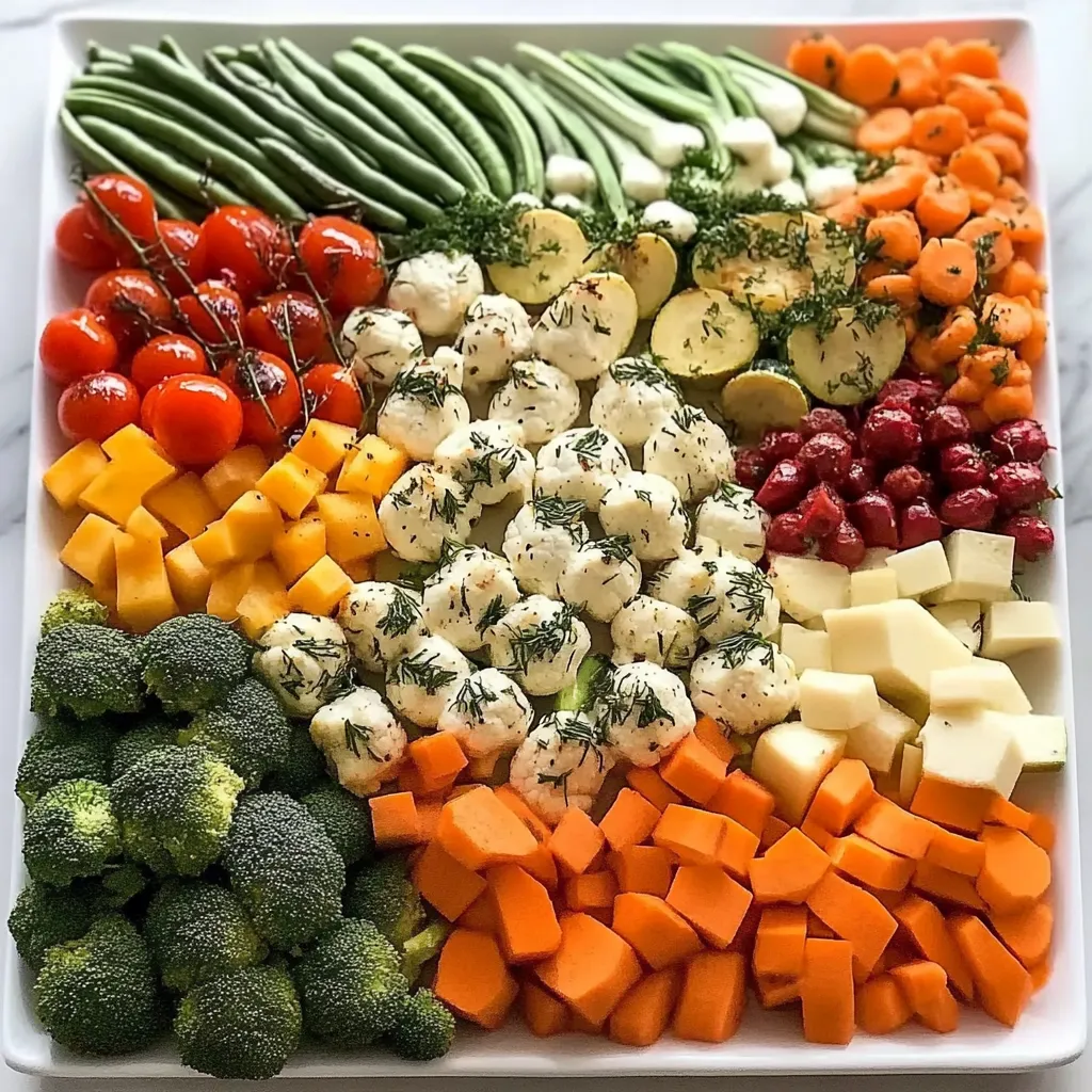 A quick and vibrant 15-minute veggie platter that serves as a colorful centerpiece at your Thanksgiving table, perfect for including everyone, especially those who prefer lighter fare.