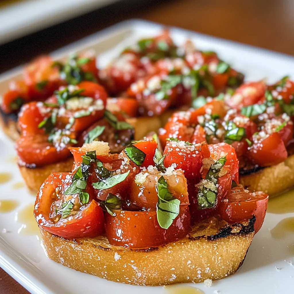 A delightful and easy recipe for Authentic Italian Tomato Bruschetta with Garlic Parmesan Toasts, perfect for any gathering.