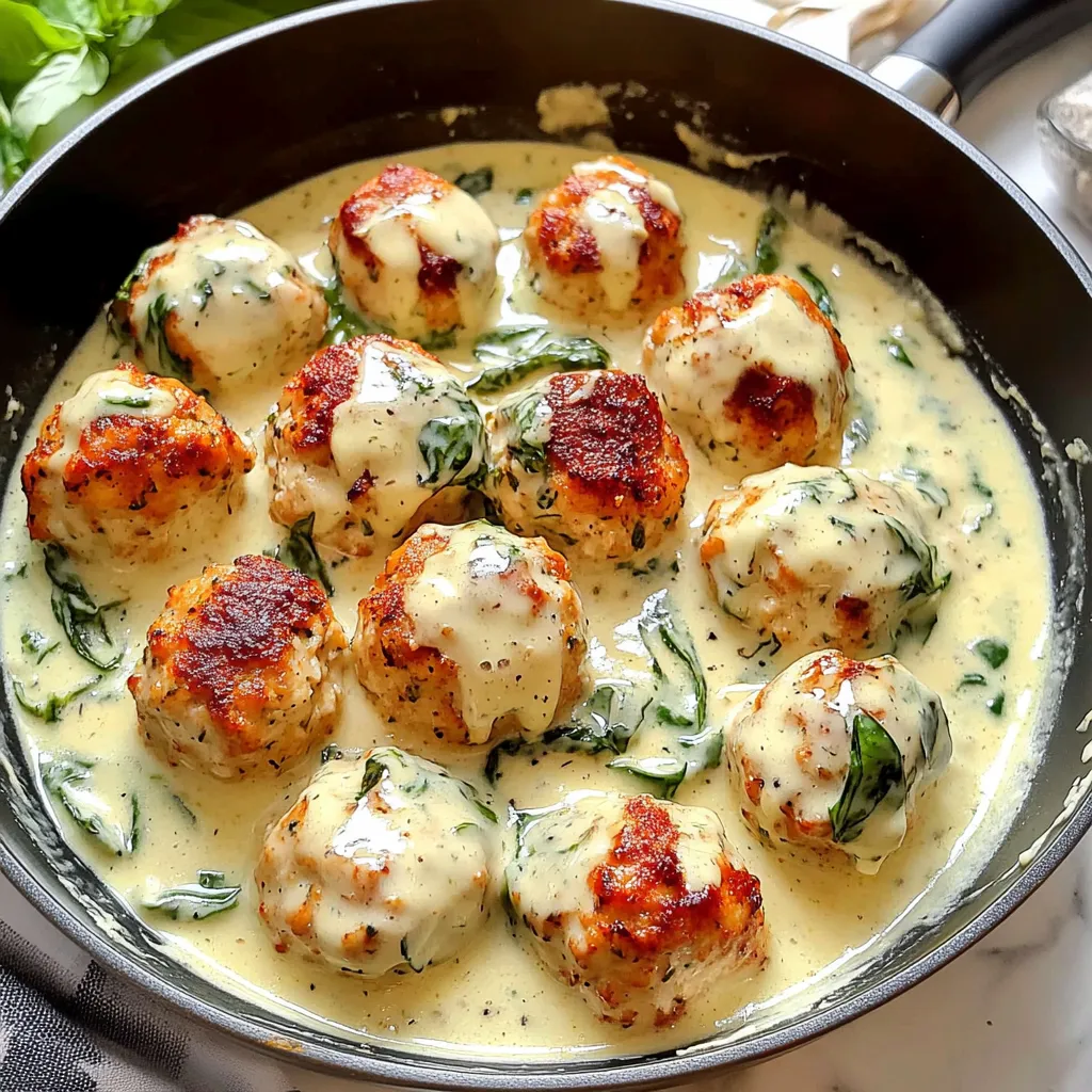 When it comes to serving these drool-worthy meatballs, I like to keep it cozy. Picture this: a plate piled high with tender meatballs smothered in that luscious spinach Alfredo sauce, a sprinkle of fresh parsley on top for color, and a side of buttery garlic bread or creamy polenta to soak up all that goodness! Maybe a crisp green salad dressed with lemon vinaigrette to balance out the richness. And let’s not forget a nice glass of red wine or a comforting herbal tea to sip on while you enjoy this feast.