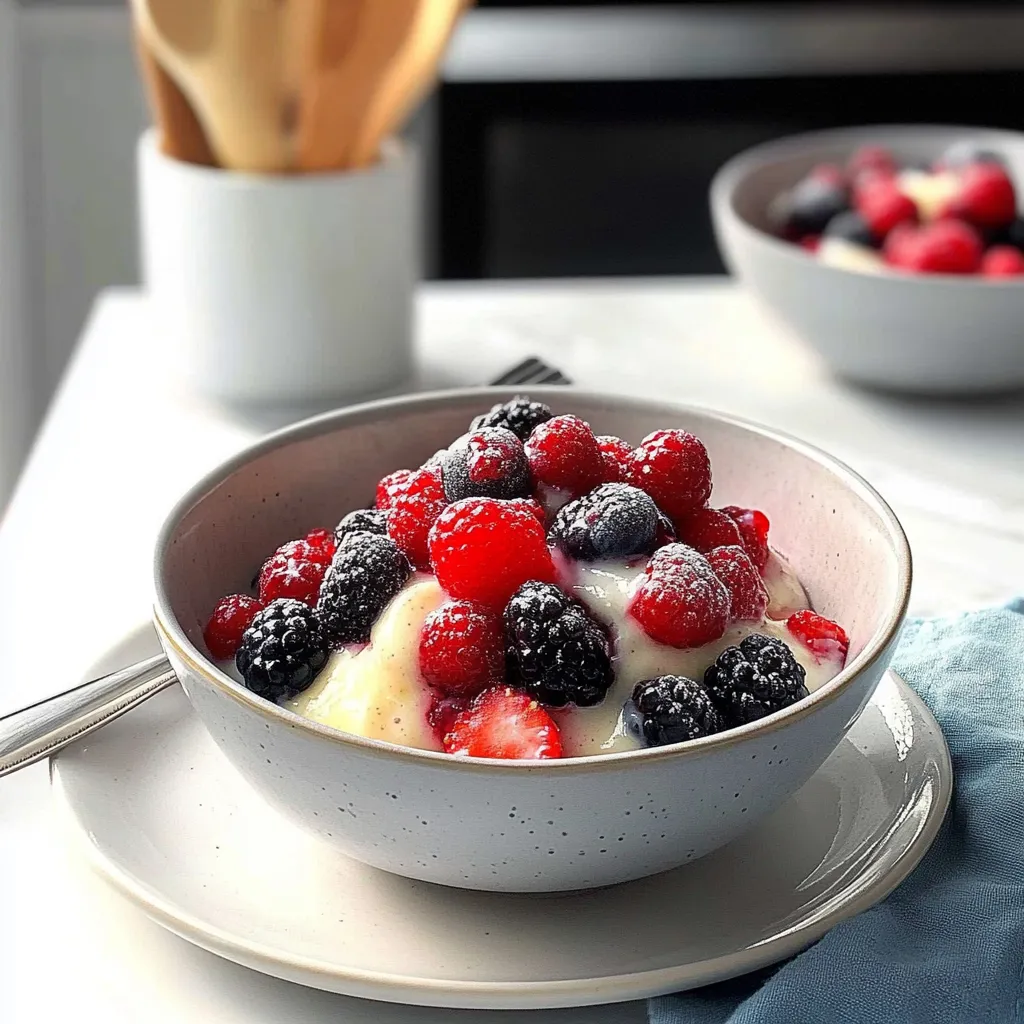 Picture this: a warm summer evening, a soft breeze blowing, and your friends gathered around the table. You serve up these gorgeous bowls of berries topped with silky vanilla custard. For an extra treat, consider garnishing with a sprinkle of crushed pistachios or shredded coconut on top for a delightful crunch! It pairs beautifully with a chilled glass of sparkling wine or maybe a light herbal tea.