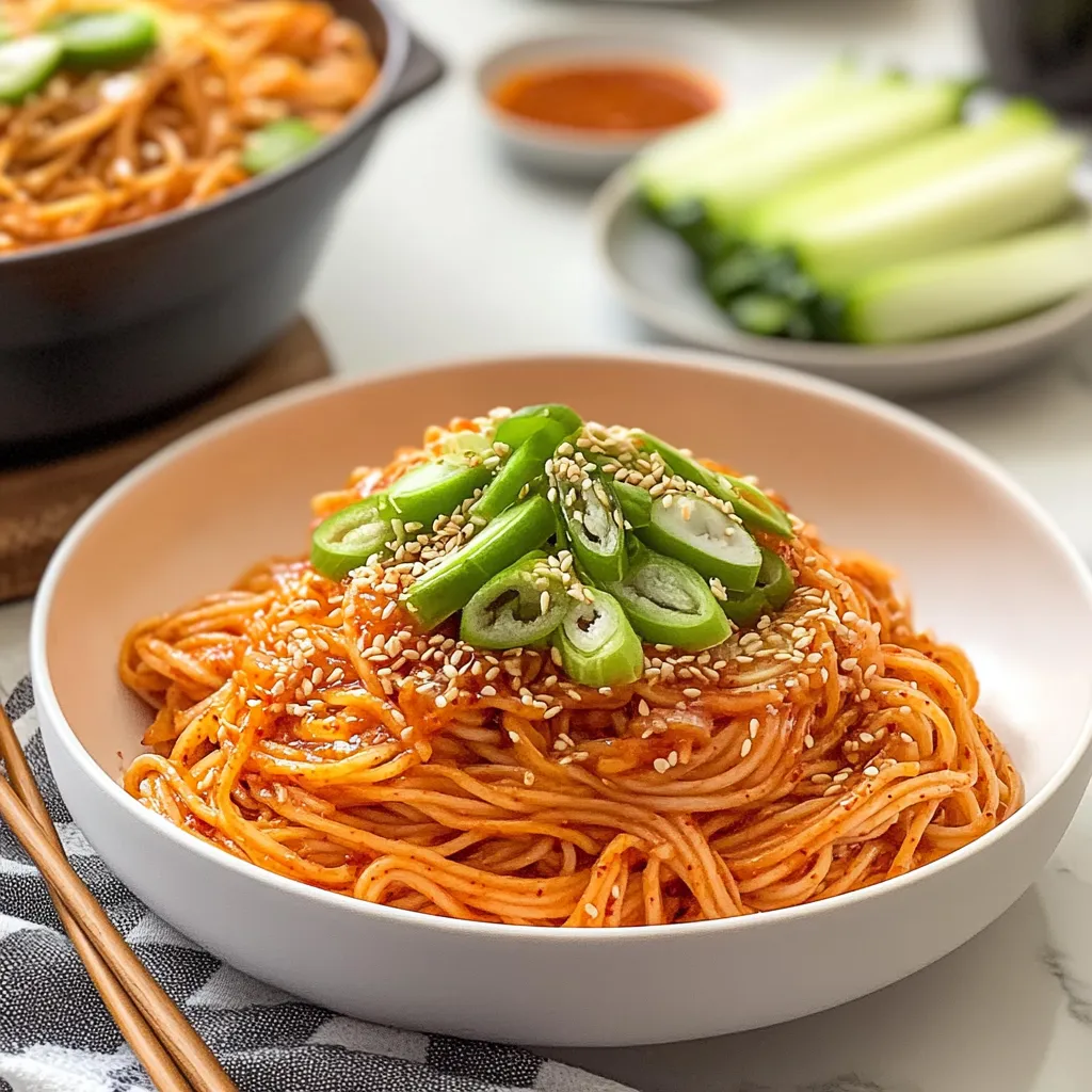A delightful and easy-to-make recipe for Bibim Guksu, a Korean spicy cold noodle dish that is refreshing and flavorful.