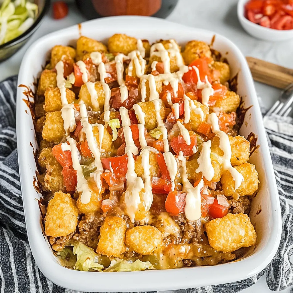 A nostalgic casserole combining the iconic flavors of a Big Mac with crispy tater tots, perfect for busy weeknights.