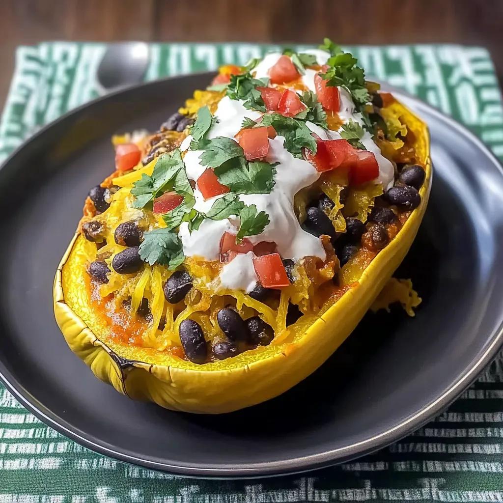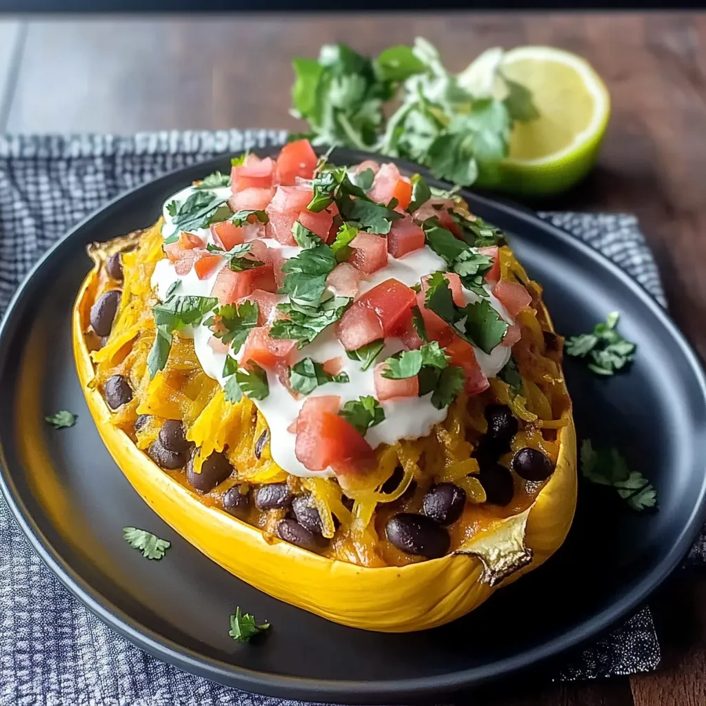Discover a savory recipe for Black Bean Spaghetti Squash Enchilada Boats packed with flavors and perfect for a healthy meal option Enjoy now
