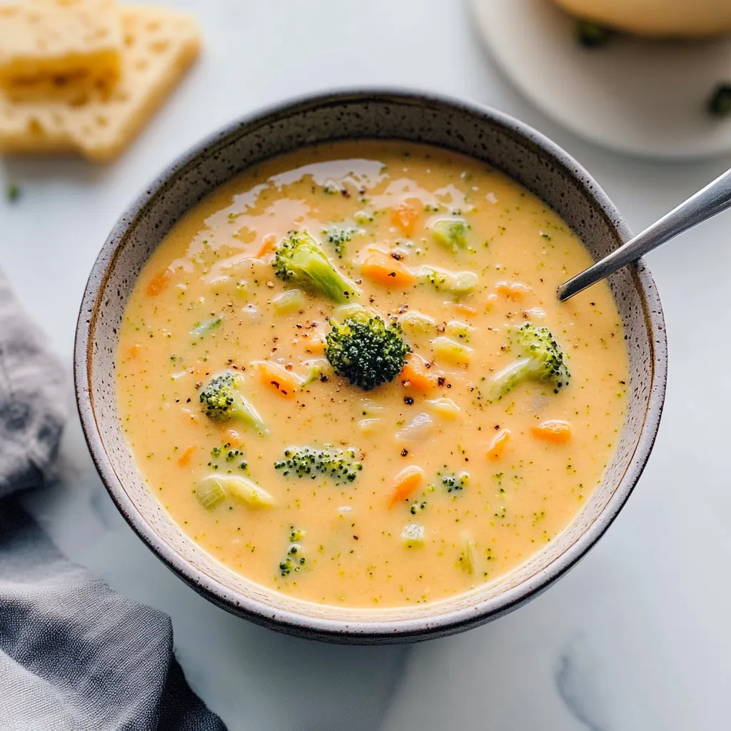 Savor the creamy goodness of Broccoli Cheddar Soup Perfect recipe for ultimate comfort combining fresh broccoli and rich cheddar in every bowl