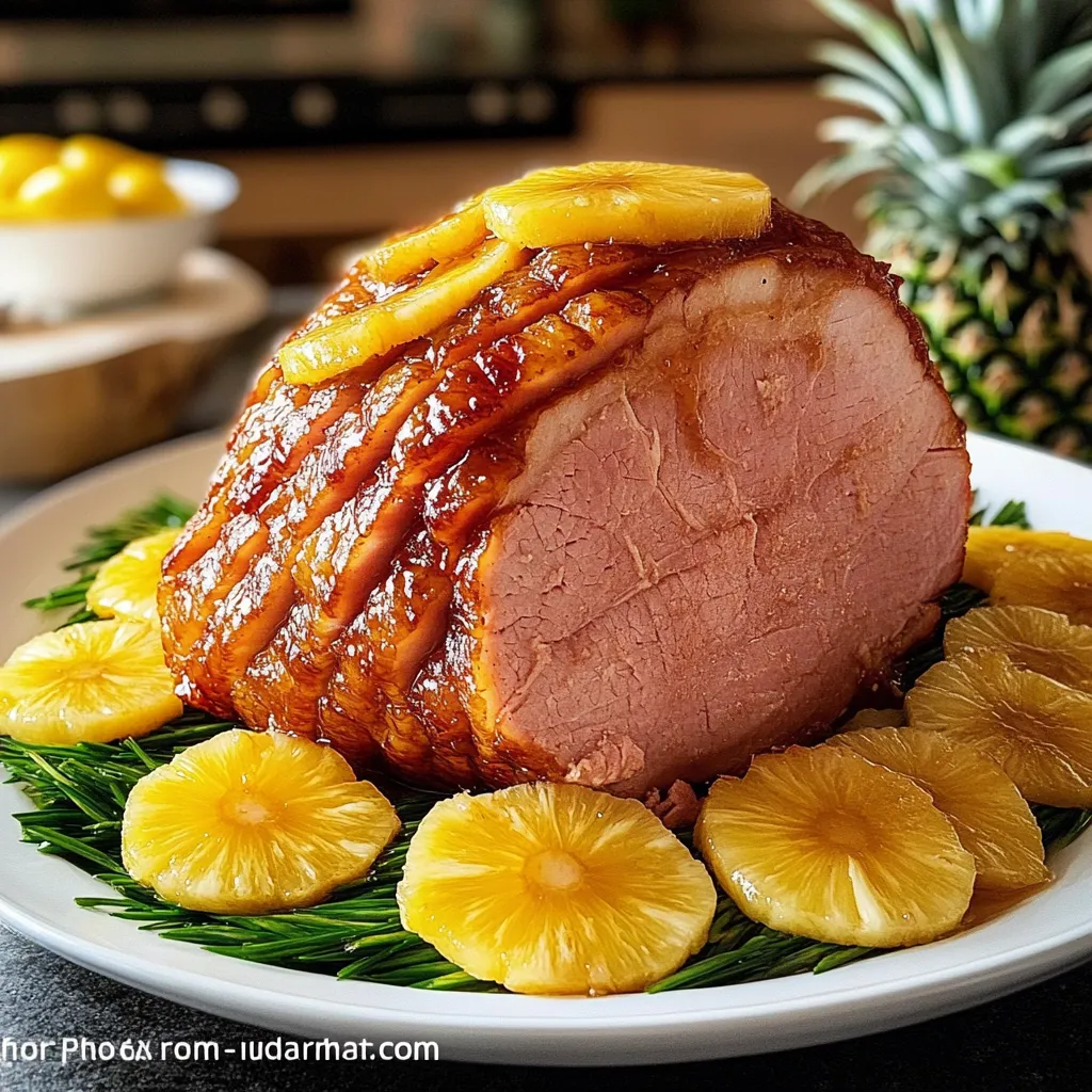 Savor this brown sugar glazed pineapple ham recipe, a perfect dish for any occasion, bringing sweetness and flavor to your holiday table! (154 chars)