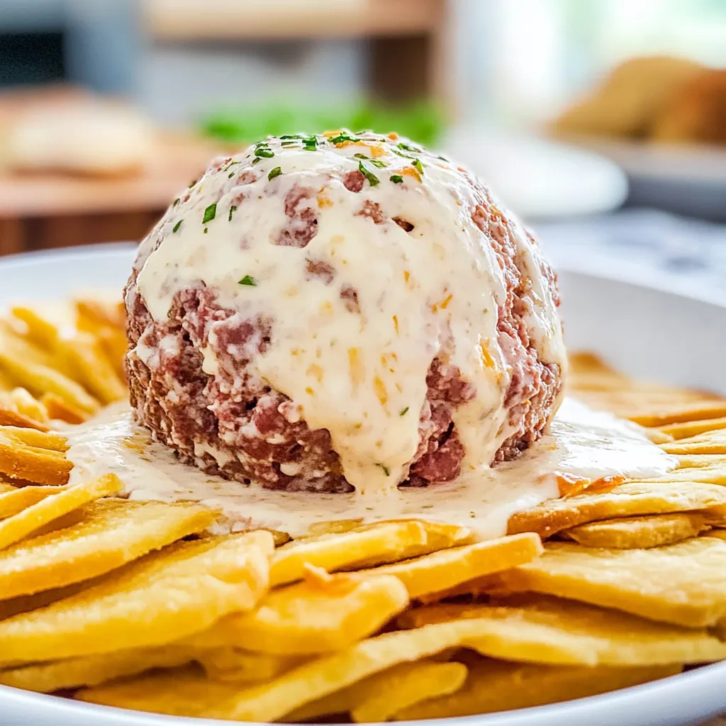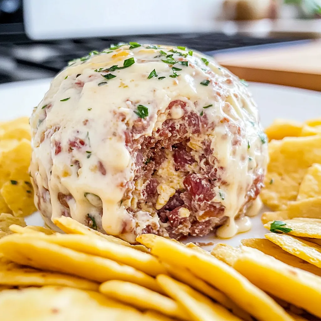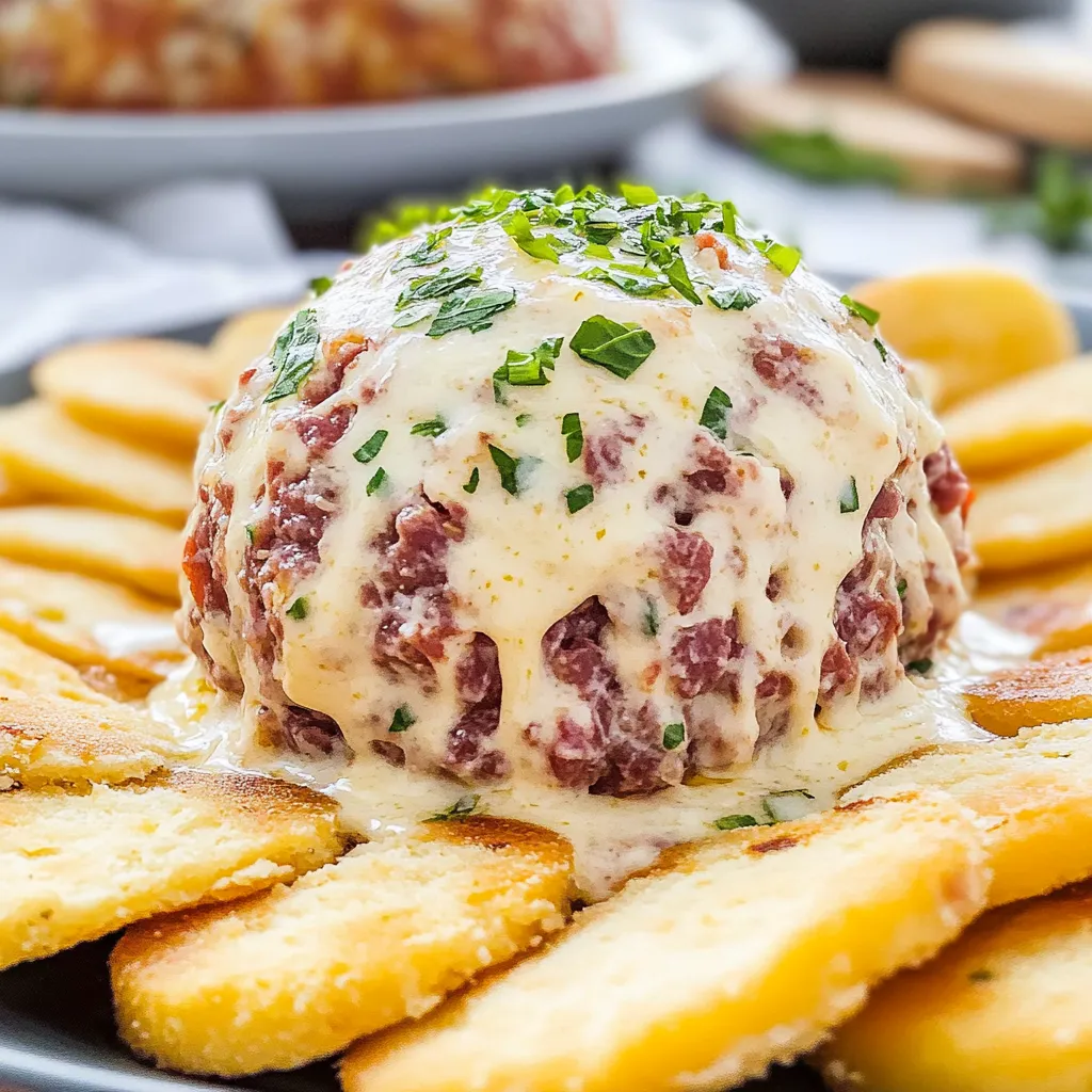 Indulge in a cheesy delight This Chipped Beef Cheese Ball is the ultimate party treat perfect for sharing with friends and family at any gathering