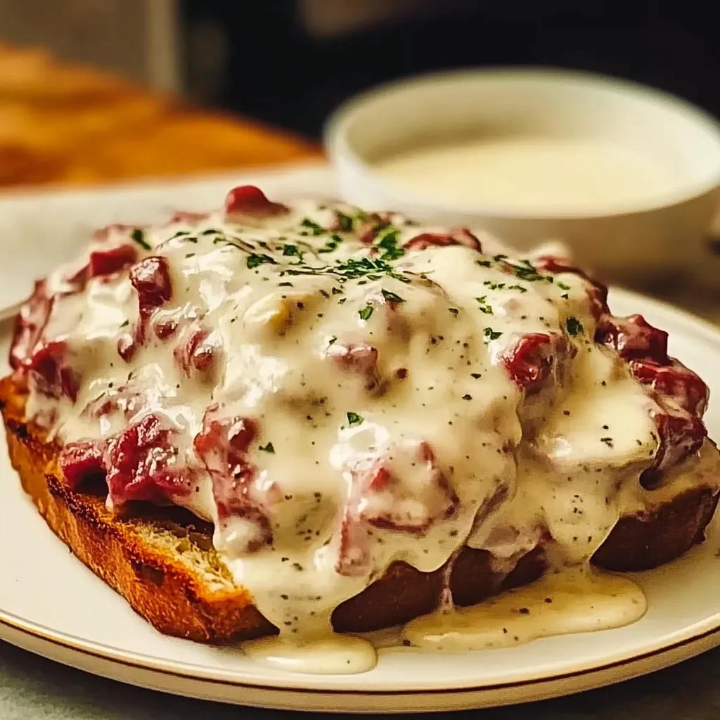 - Serve: Pour the creamed beef generously over the toasted bread. If you want to get fancy, sprinkle some parsley or chives on top for that pop of color!