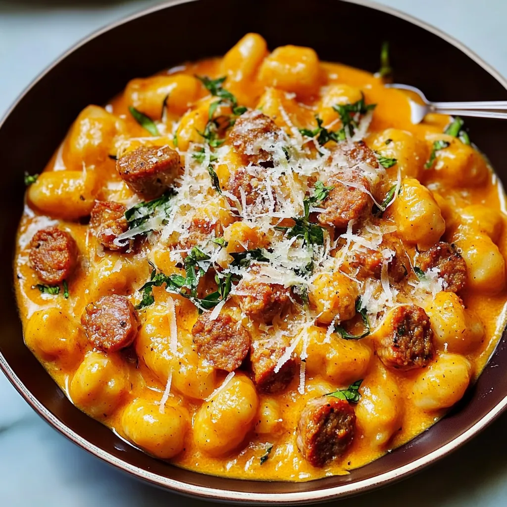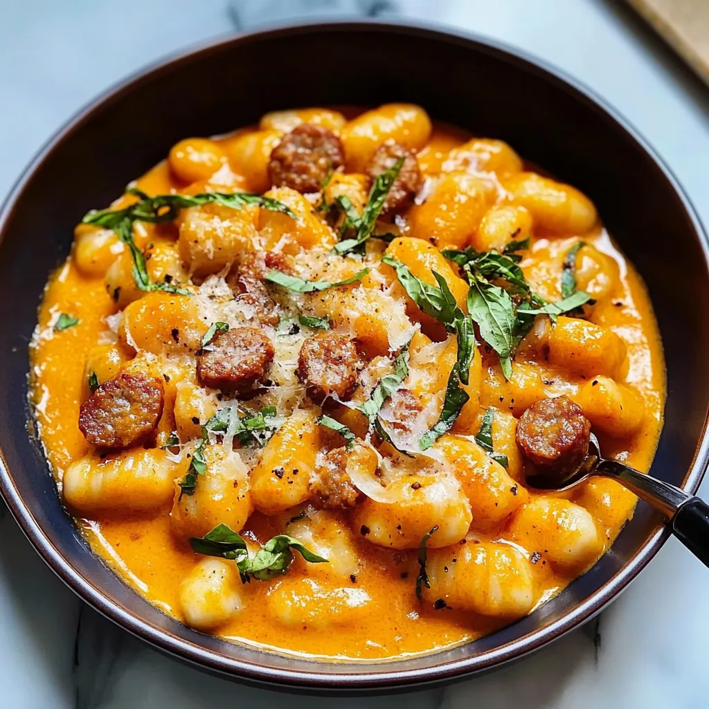Indulge in decadent creamy pumpkin gnocchi paired with savory Italian sausage This recipe delivers rich flavors perfect for a cozy meal 151 chars
