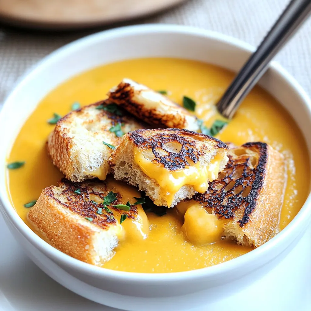 - Serve and Enjoy: Ladle the creamy pumpkin soup into bowls and top with grilled cheese croutons. You might want to add a sprinkle of extra cinnamon or some fresh herbs for a pop of color. Dig in and enjoy every warm, flavorful bite!
