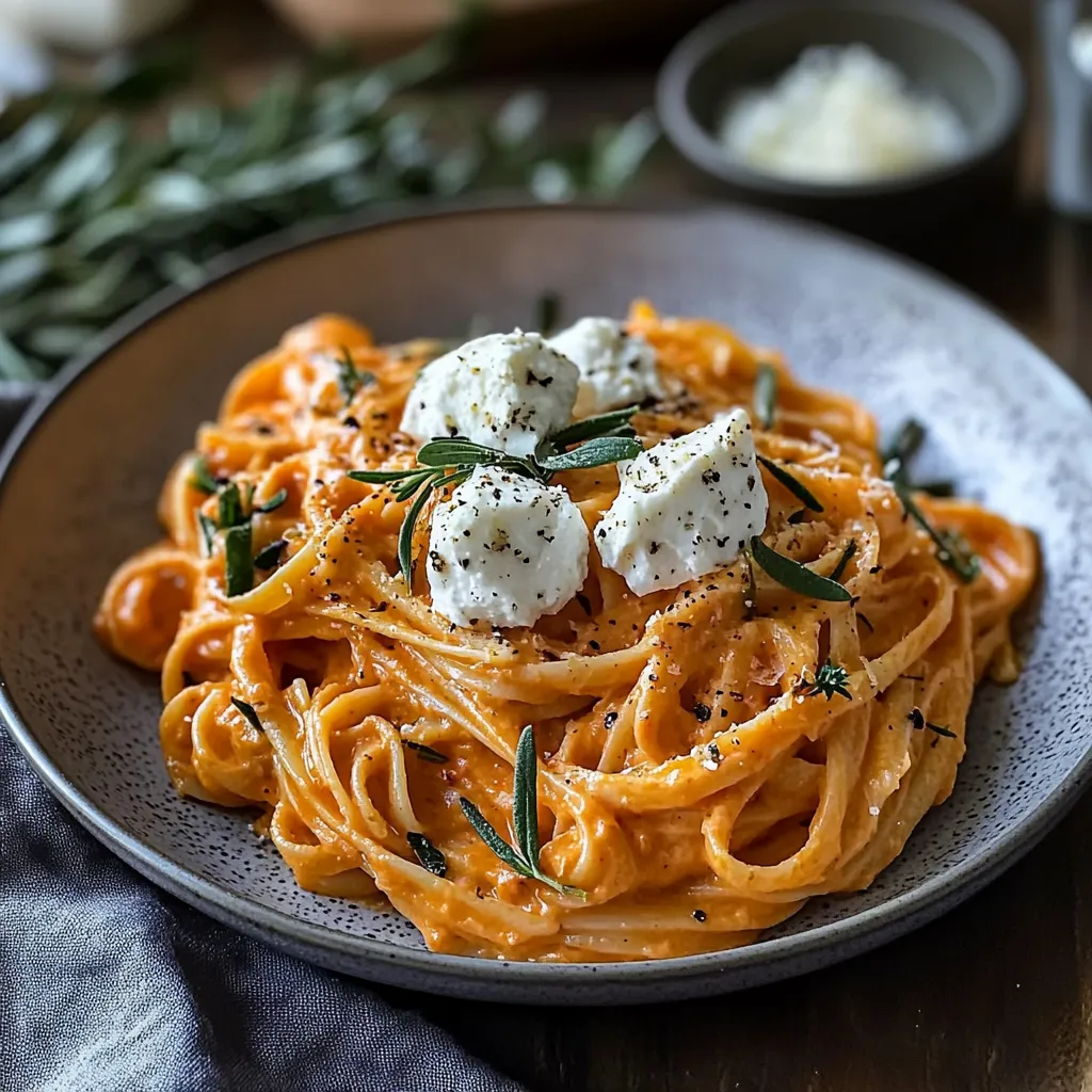 Decadent Creamy Red Pepper Pasta w Burrata Herbs Recipe