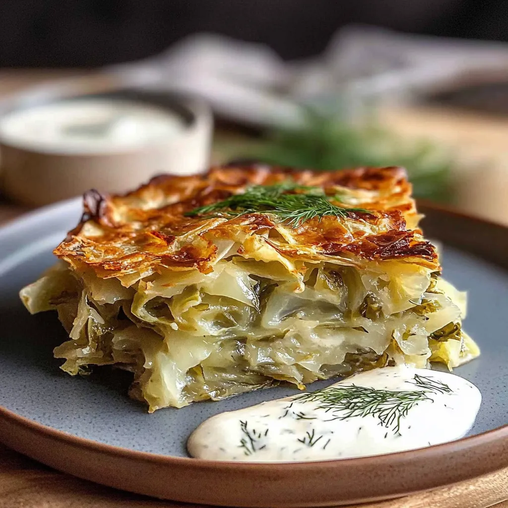 Irresistible Crispy Cabbage Pie with Dill Cream Sauce Recipe