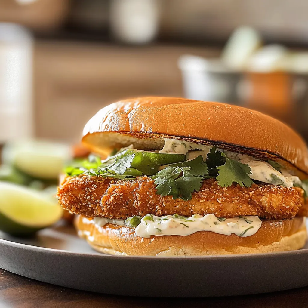 Savor a Crispy Chicken Sandwich with zesty cilantro lime flavor, perfectly air-fried or baked. A must-try for quick, delicious meals! (155 chars)