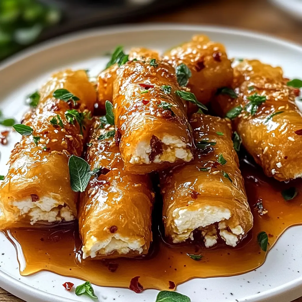 Discover these mouthwatering feta rolls baked to crispy perfection drizzled with spicy chili honey A musttry recipe for flavor lovers