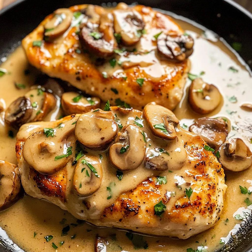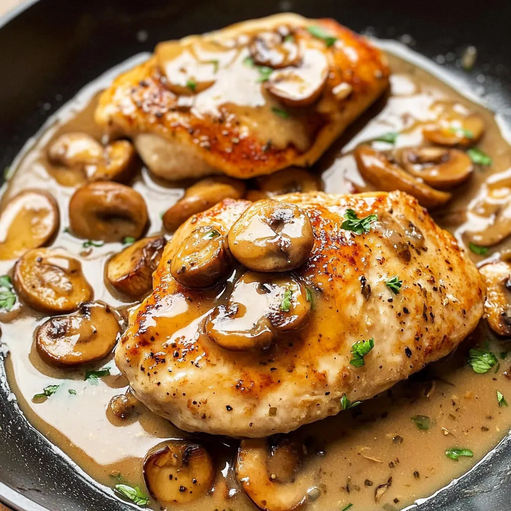 - Return the Chicken: Return the chicken to the pan, spooning the mushroom sauce over the top. Let everything simmer together for another minute to combine the flavors.