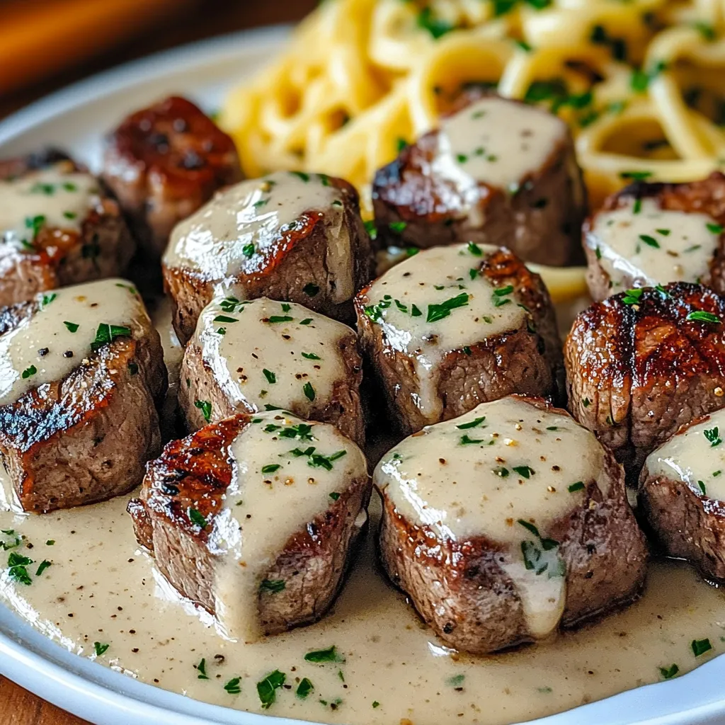 Picture this: you’ve just plated those delectable steak bites swimming in creamy sauce, and you’re setting the table. Pair it with a simple side salad with a tangy vinaigrette to cut through the richness or serve it over a bed of fluffy rice or al dente pasta. If you’re feeling extra indulgent, a side of garlic bread is perfect for soaking up that sauce. Don’t forget a lovely glass of red wine — it’s the cherry on top of a cozy meal!