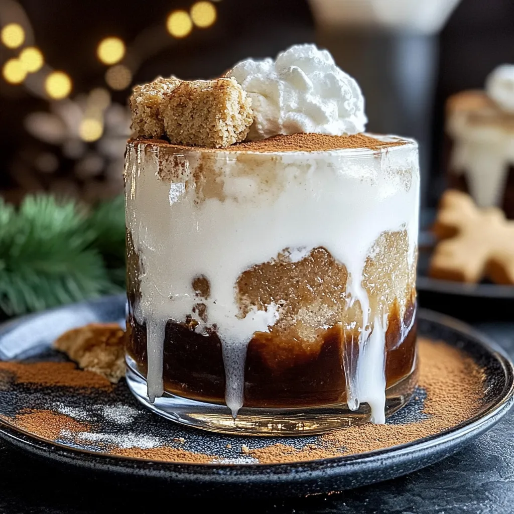 A delightful twist on the classic White Russian cocktail, blending rich coffee, creamy milk, and festive gingerbread spices for a perfect holiday drink.