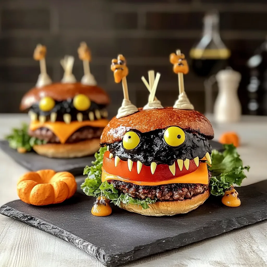 Pro Tip: To make these burgers even more monstrous, you can use a toothpick to stick a few crispy onion rings on top for horns or ears!