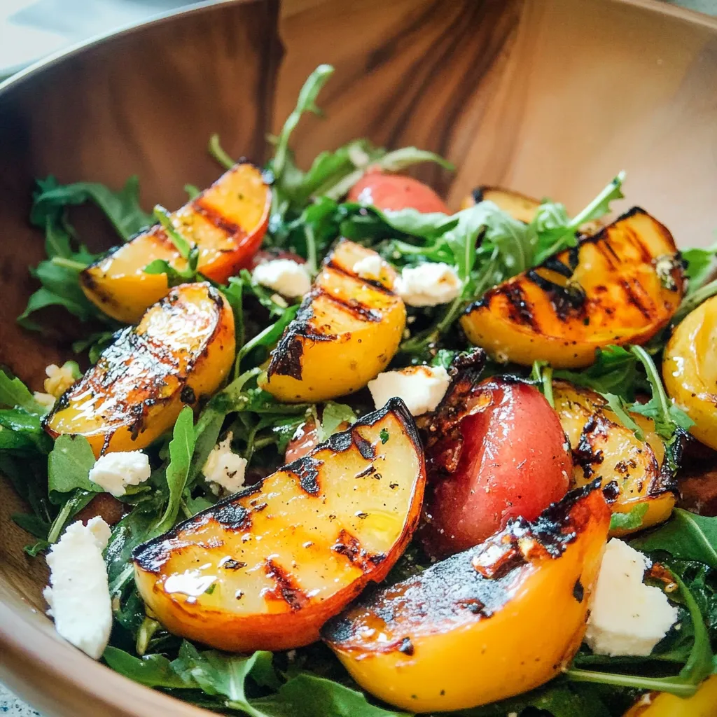 A vibrant and refreshing Grilled Nectarine Salad that combines the sweetness of grilled nectarines with mixed greens, goat cheese, and a tangy dressing, perfect for summer gatherings.