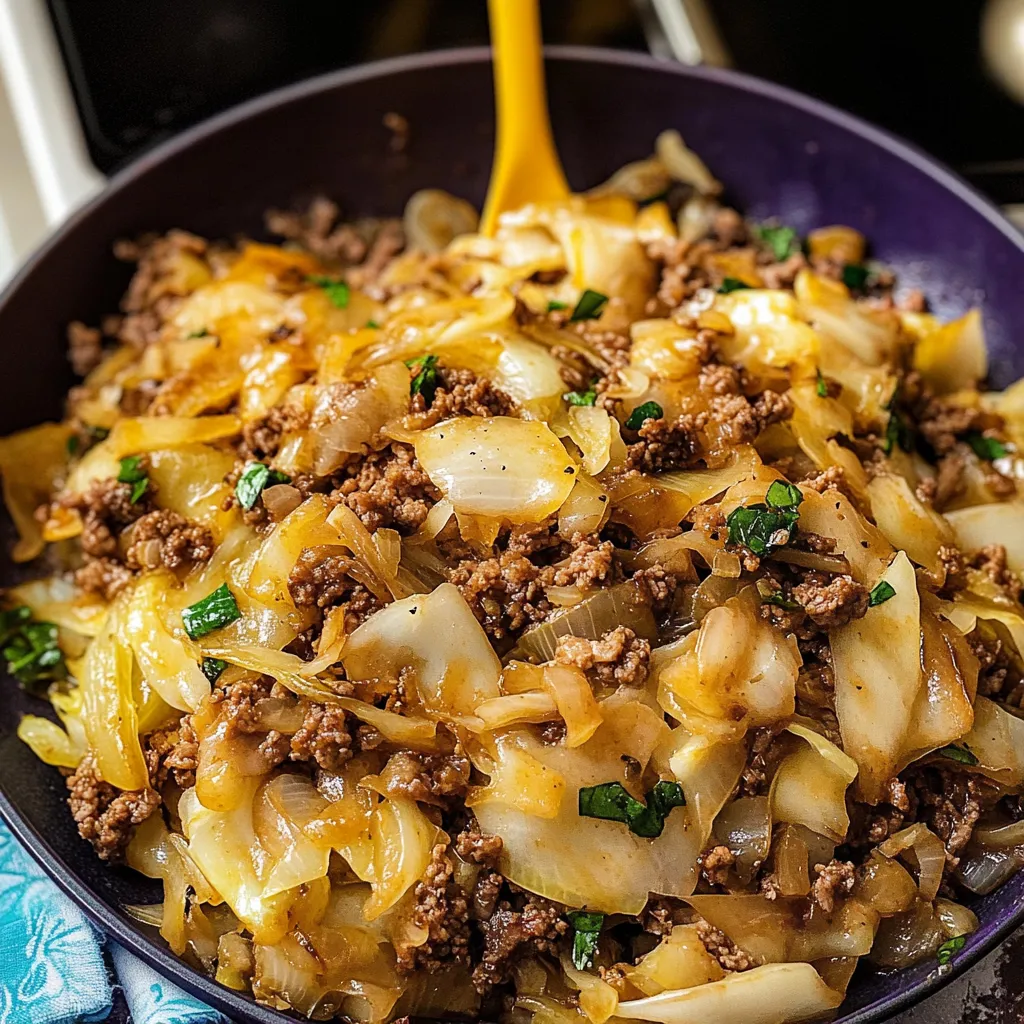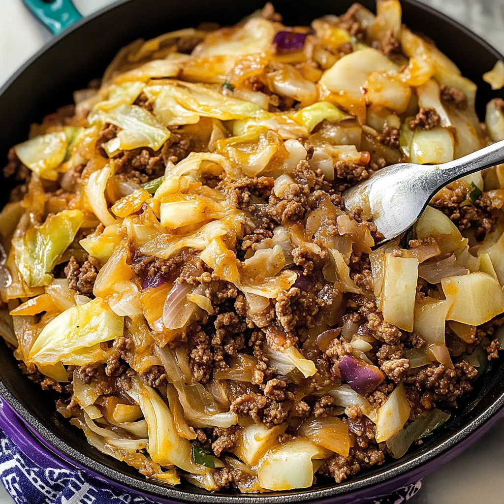 A warm and comforting dish of Ground Beef and Cabbage that evokes nostalgic feelings of cozy dinners, perfect for busy weeknights.
