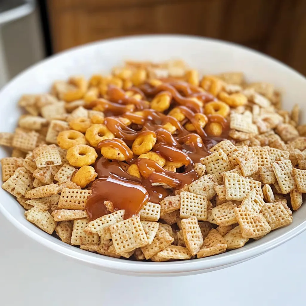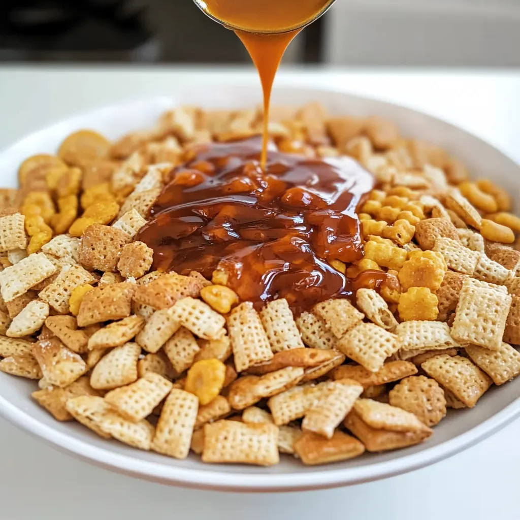 - Combine: Pour the melted mixture over your dry ingredients. Using a spatula, gently fold everything together until all the pieces are lightly coated. Be careful not to crush the Chex—no one wants a soggy mix!