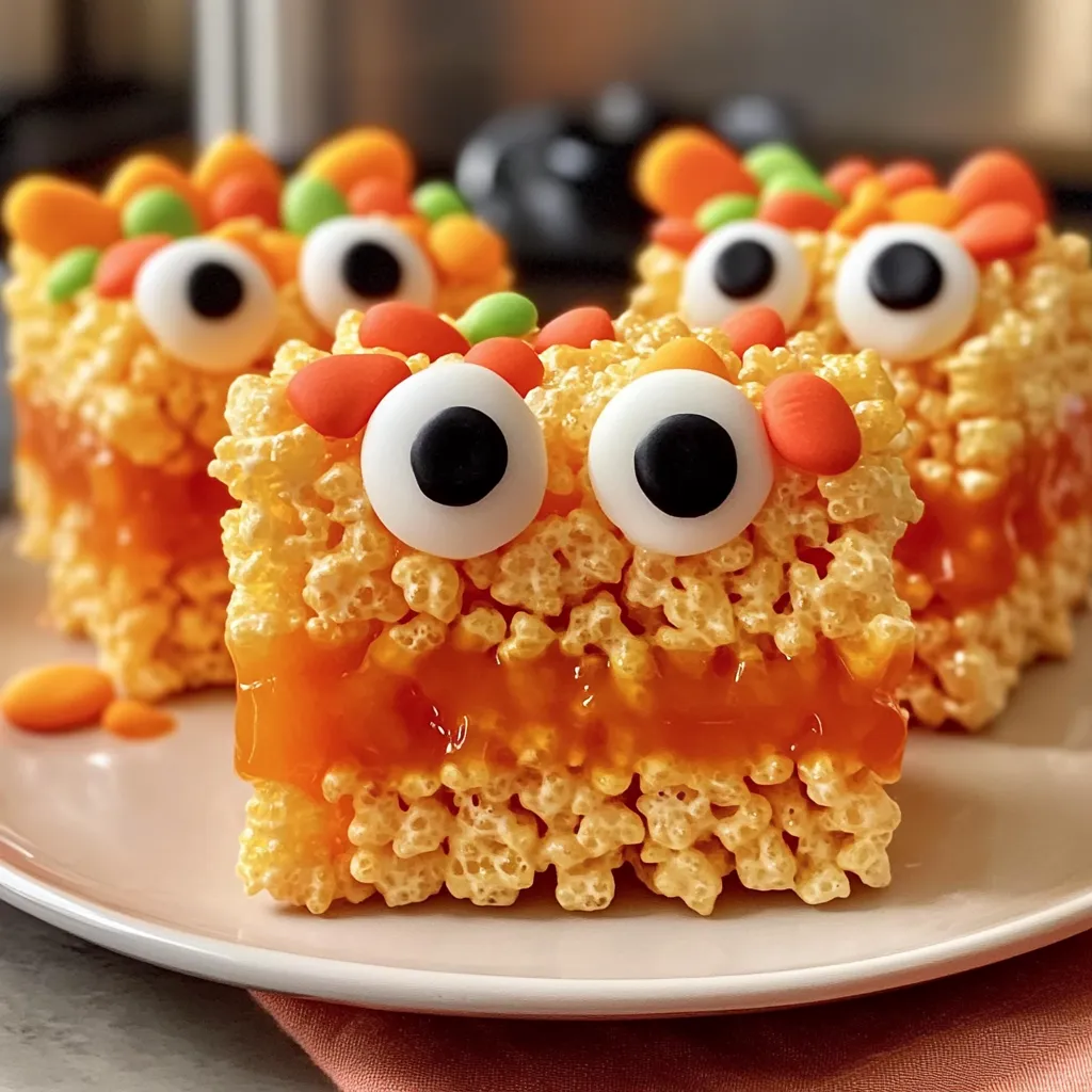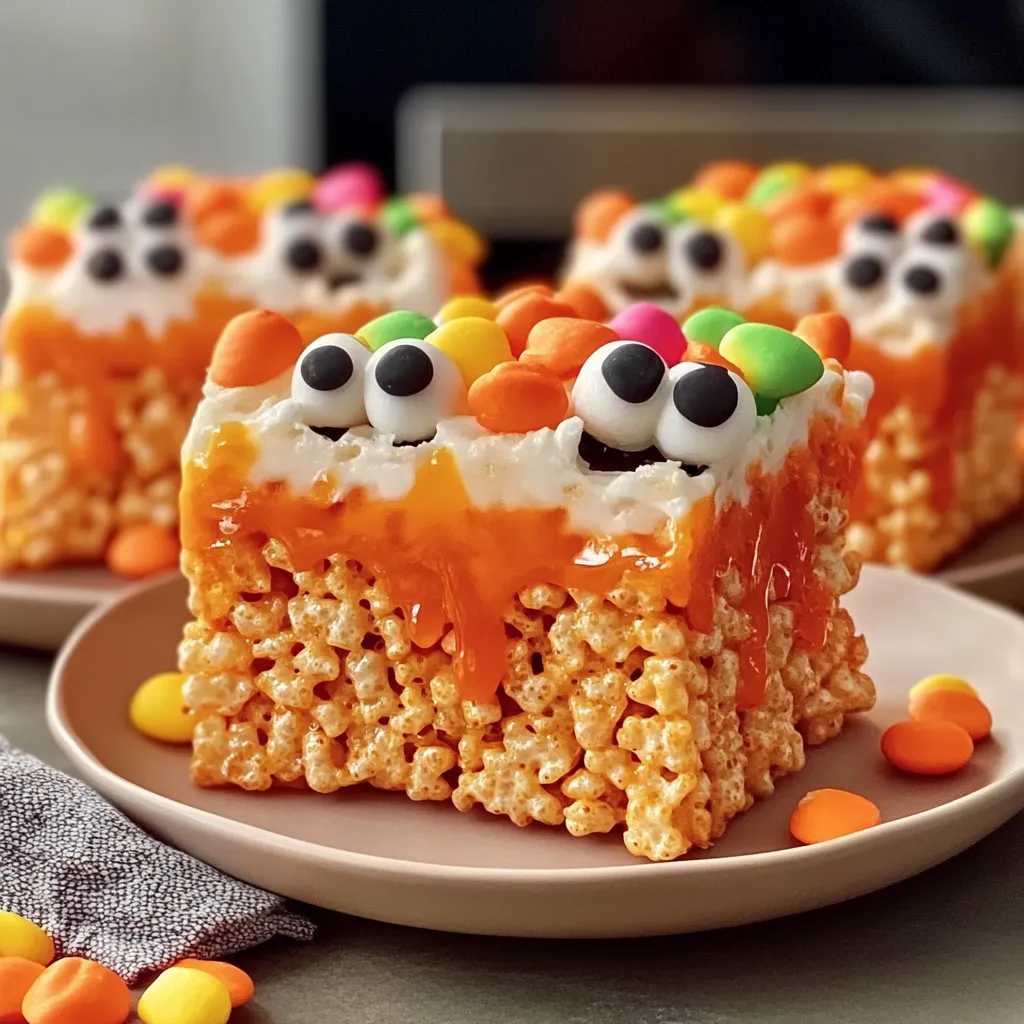 These Halloween Rice Krispie Treats are perfect for a variety of occasions! Serve them as a spooky centerpiece at your Halloween party, or wrap them up individually in clear bags tied with whimsical ribbons for trick-or-treaters. Pair them with hot apple cider or a pumpkin spice latte for a cozy fall treat. Imagine the laughter and squeals of delight as guests dive into these sweet delights! They pair wonderfully with a friendly gathering where everyone shares their ghost stories or Halloween memories.