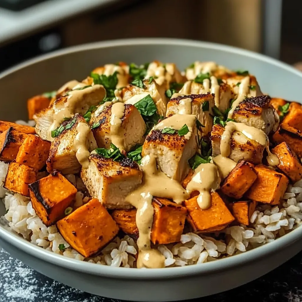 A warm, comforting bowl of Healthy Chicken & Sweet Potato Rice Bowl, perfect for any day of the week, bursting with flavor and nutrition.