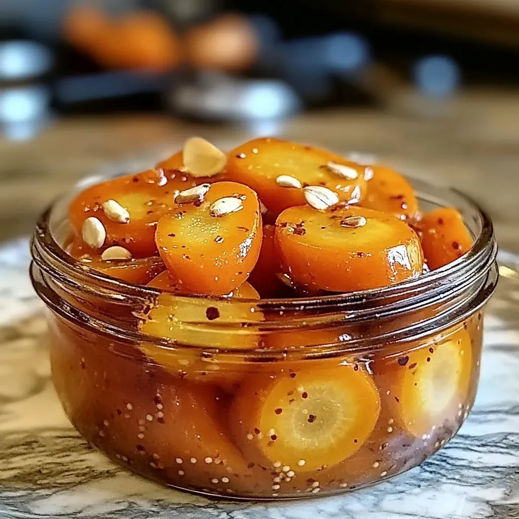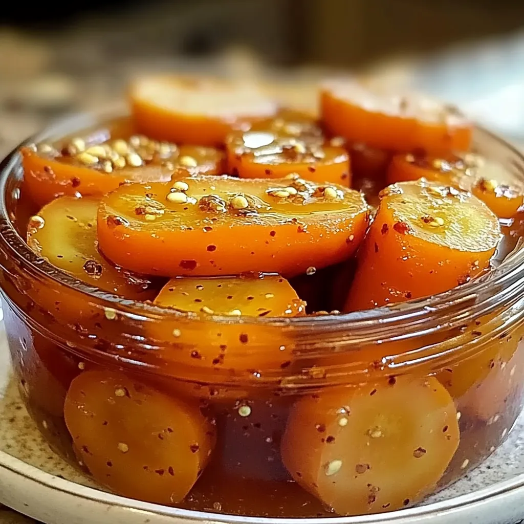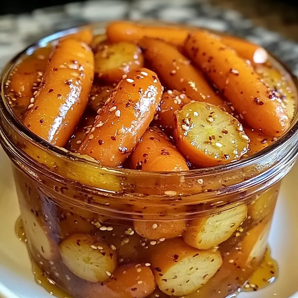 A sweet and spicy blend of hot honey and pickled carrots, perfect for snacking or as a side dish.