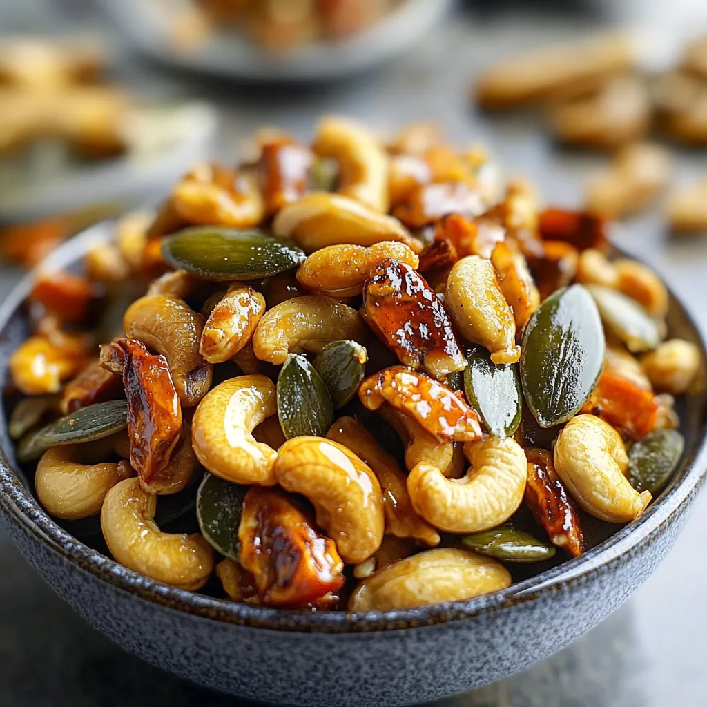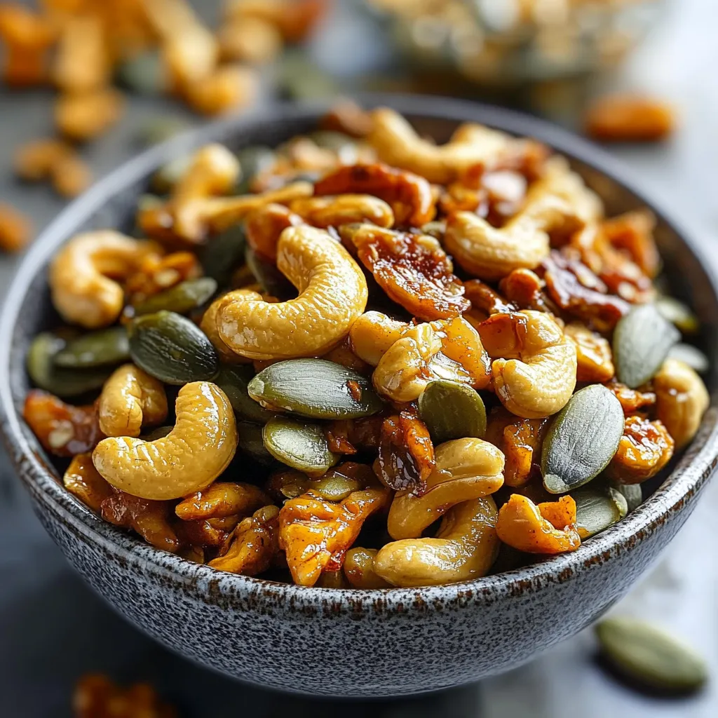 A delicious snack mix combining sweet, spicy, and crunchy pumpkin seeds and chili lime cashews, perfect for fall gatherings and cozy nights in.
