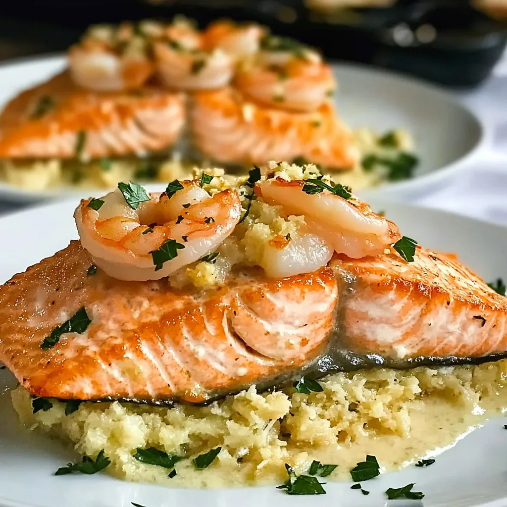 A delicious and impressive dish combining buttery salmon fillets with a flavorful shrimp filling, perfect for transforming weeknight dinners into special occasions.