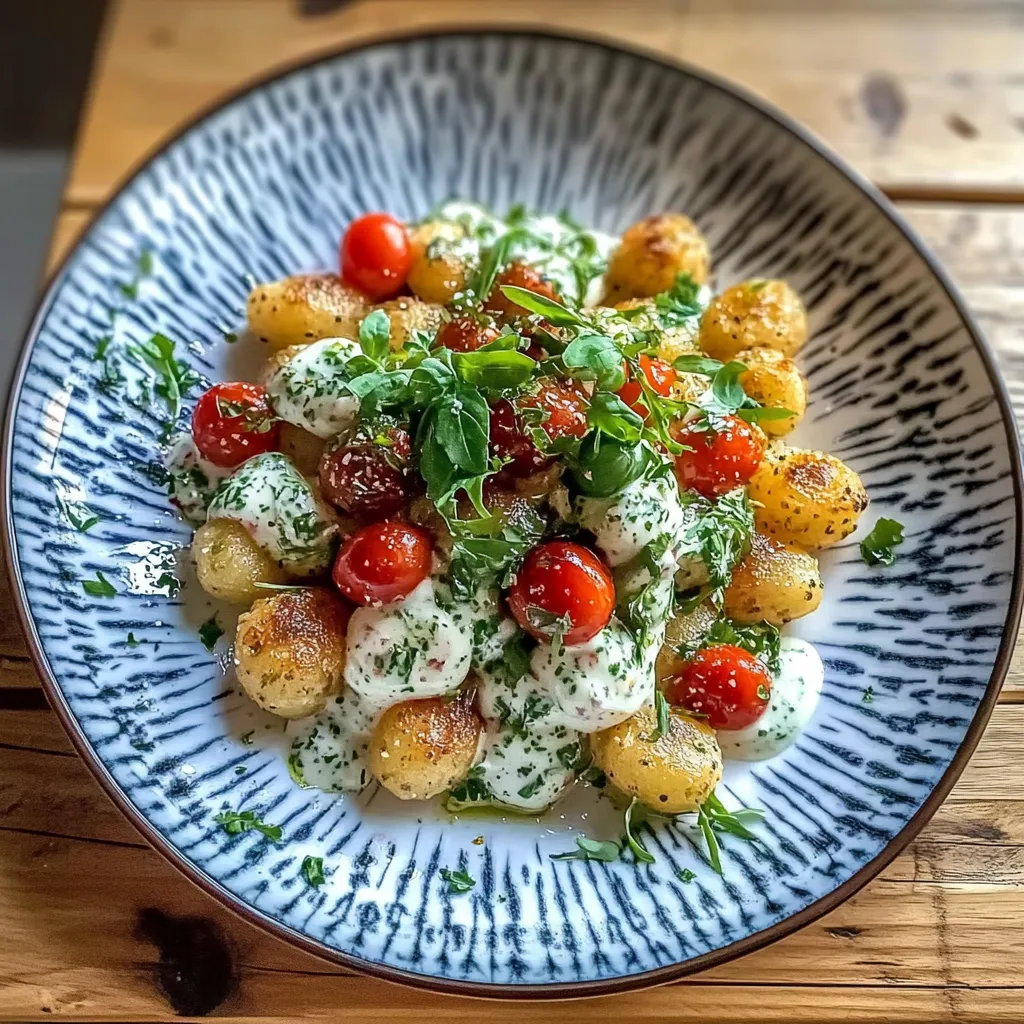 Enjoy a crispy gnocchi salad drizzled with yogurt dressing. This dish is a flavor explosion that elevates your meal with every bite!
