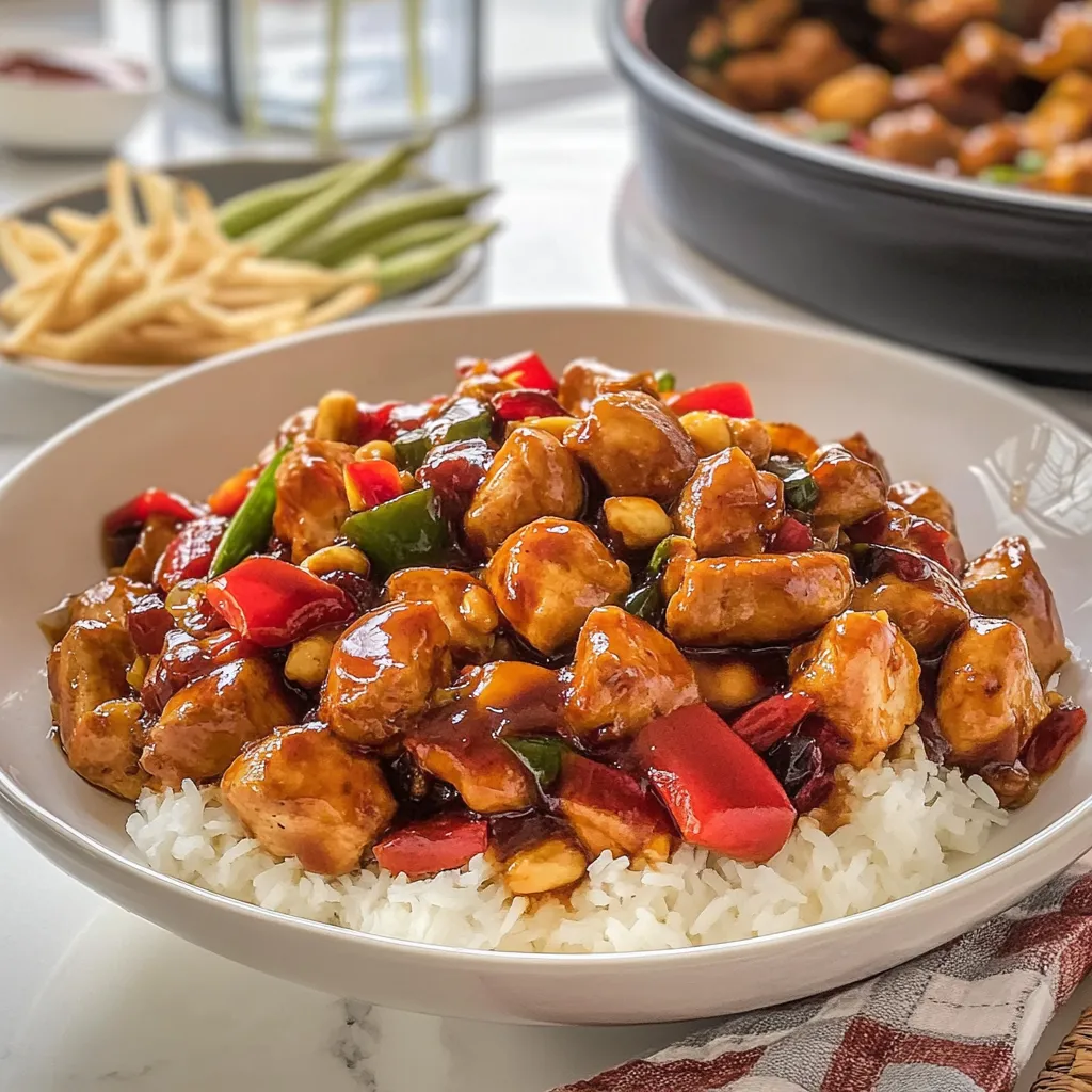 A delicious take on Kung Pao Chicken, featuring a tantalizing blend of sweet, spicy, and savory flavors perfect for busy weeknights.