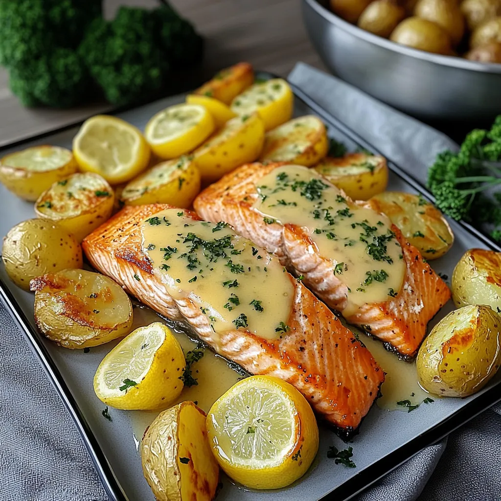 Savor Lemon Butter Salmon with Crispy Potatoes Delight!