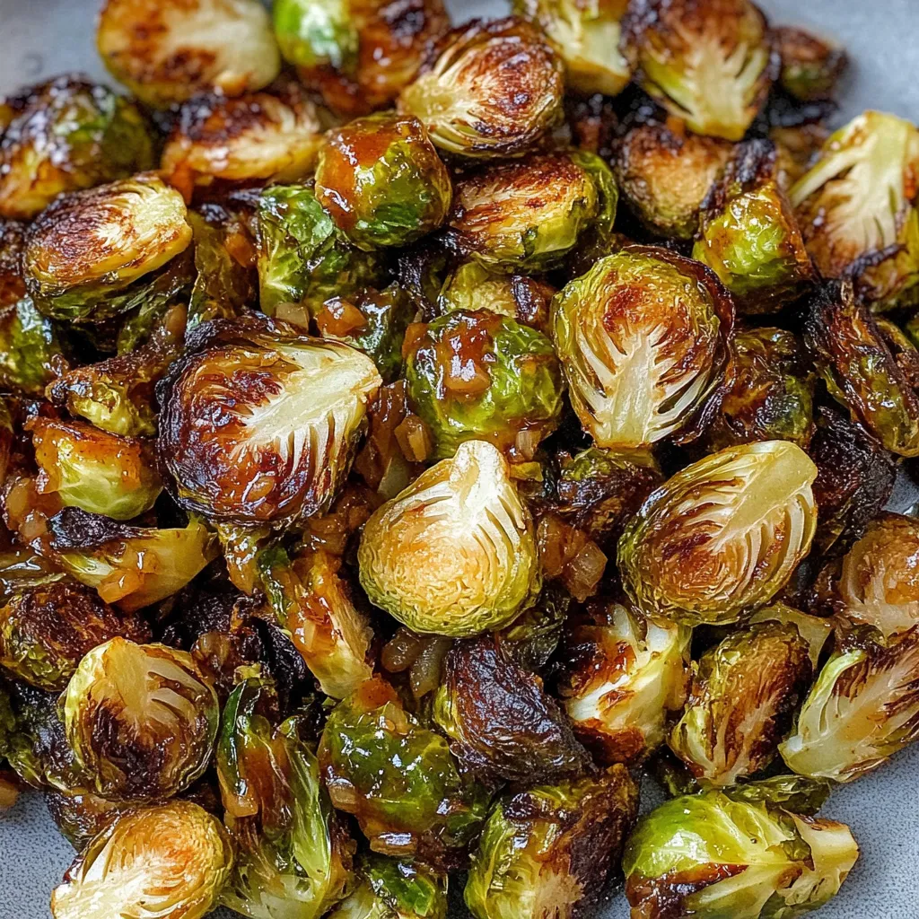 These Brussels sprouts are fantastic as a side dish! I love serving them alongside a juicy steak or grilled chicken for an indulgent dinner. They also pair beautifully with creamy mashed potatoes or a fluffy quinoa salad for a hearty vegetarian meal. And don’t forget a glass of red wine or sparkling water with fresh lemon to elevate your dining experience!