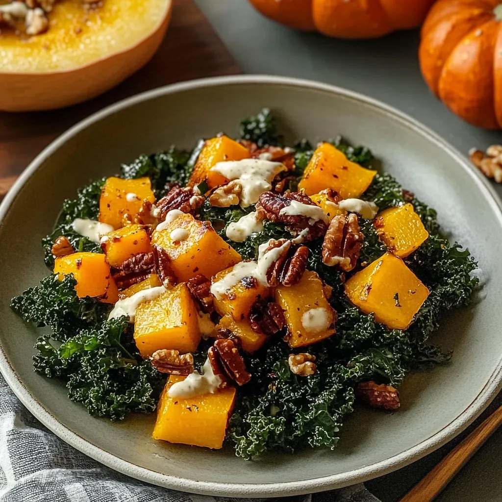 Savor the goodness of mapleroasted squash in a kale salad the ultimate fall dish that combines flavor and nutrition for a healthy meal 152 chars