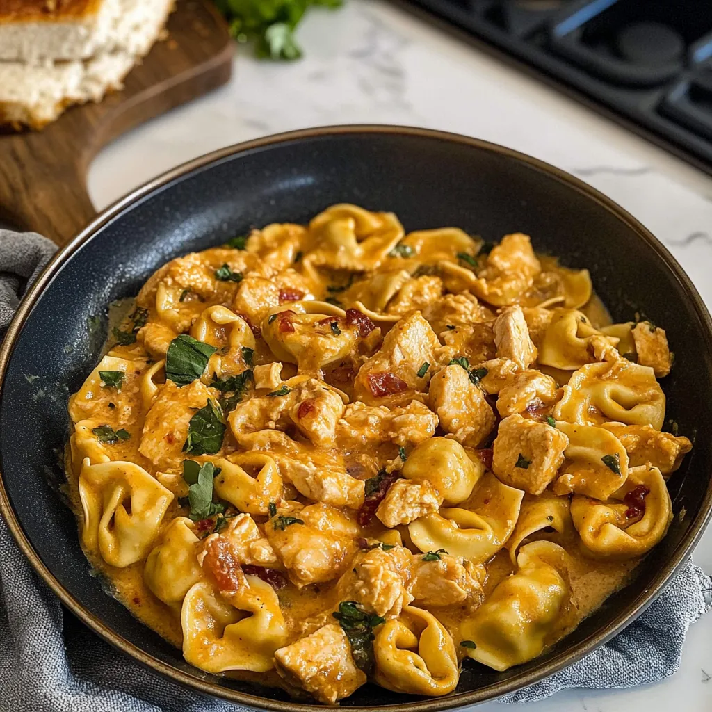 A heartwarming dish that combines tender chicken, creamy sauce, and flavorful tortellini for a meal that brings people together.