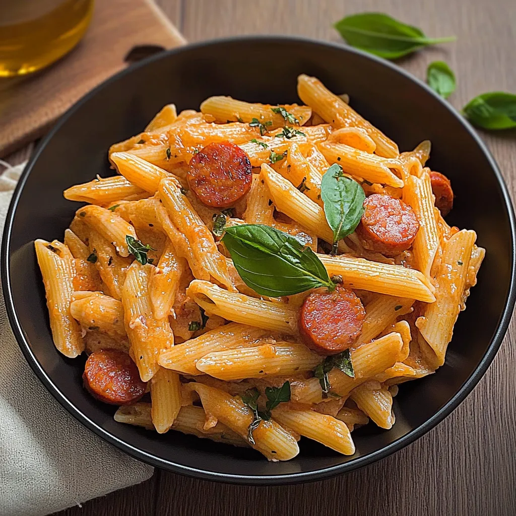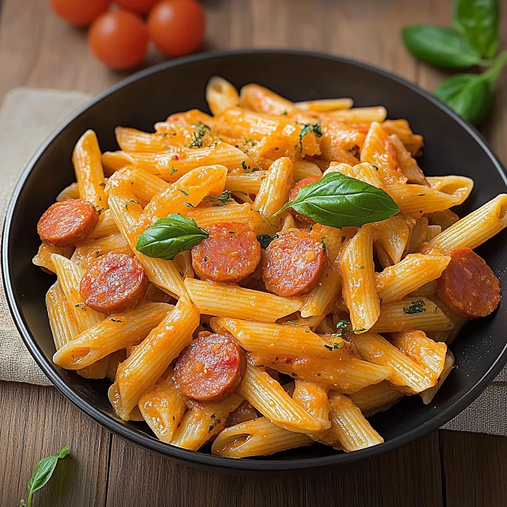 A comforting one-pot meal featuring kielbasa and pasta, perfect for quick weeknight dinners.