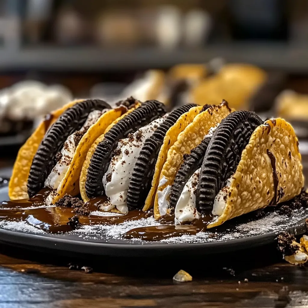 - Add toppings: Top each taco with a dollop of whipped cream, a sprinkle of crushed Oreos, a drizzle of chocolate syrup, and maybe even a few mini chocolate chips if you’re feeling adventurous!