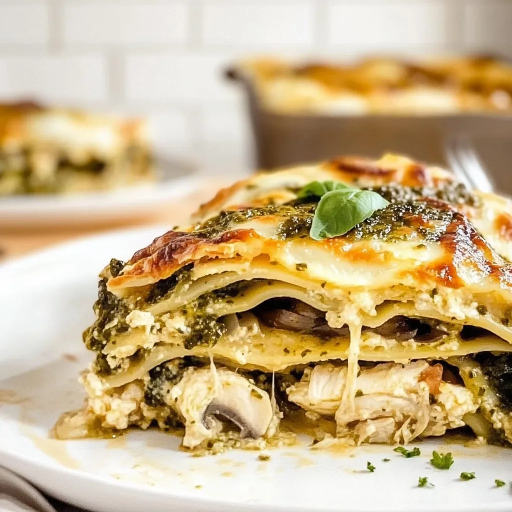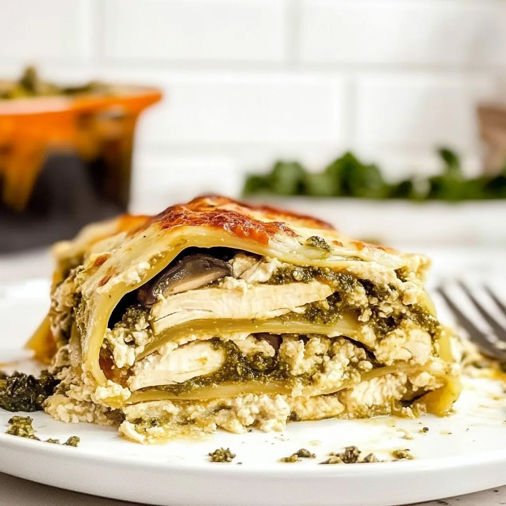 Indulge in Pesto Mushroom Chicken Lasagna Roll Ups for a tasty easy dinner Perfectly layered this dish brings comfort and flavor to your table