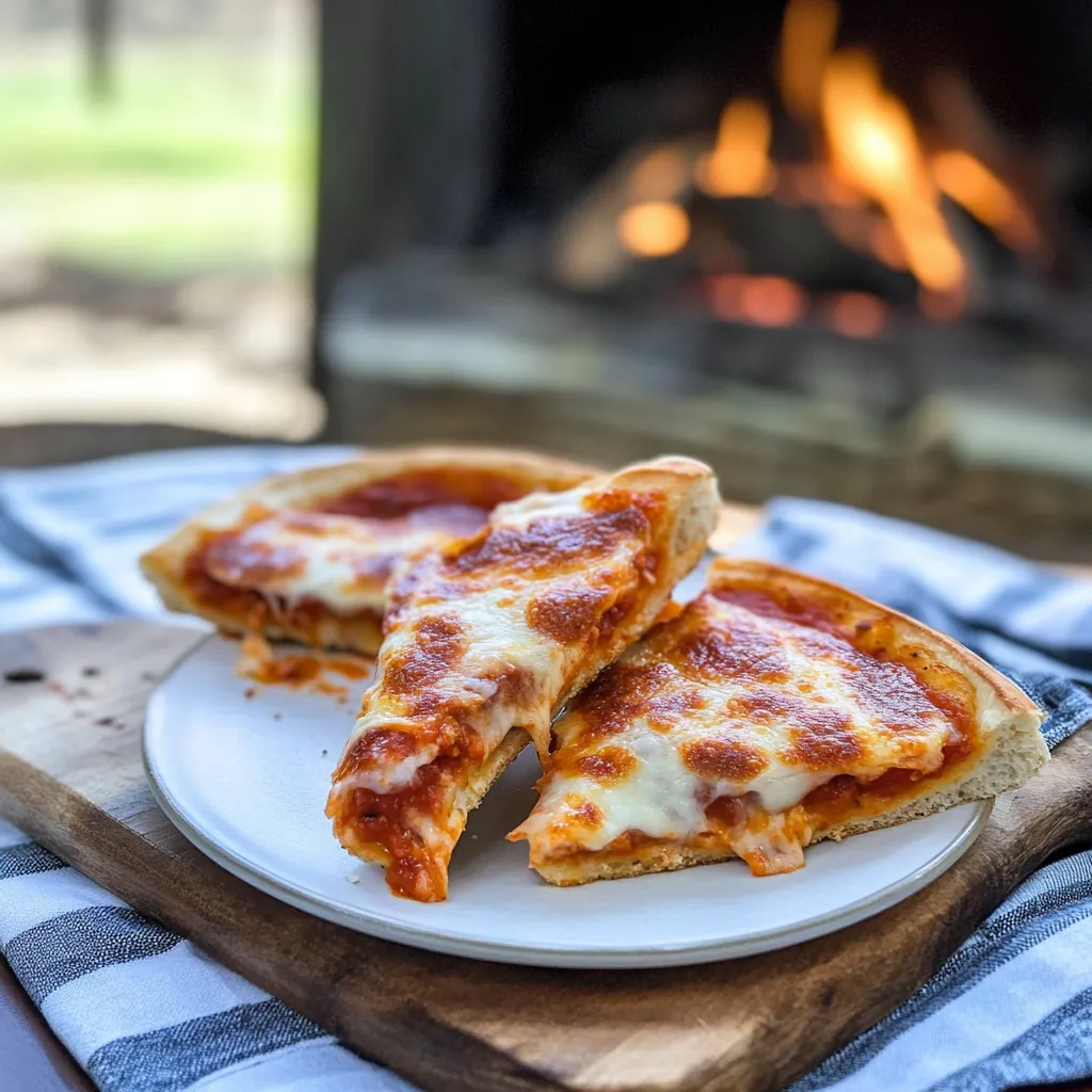 - Rest and serve: Once done, carefully remove the pie from the heat. Let it cool for a minute—trust me, the gooey cheese can be a molten lava-like treat! Slice in half if you’d like and enjoy with a squeeze of fresh basil or extra pizza sauce for dipping!