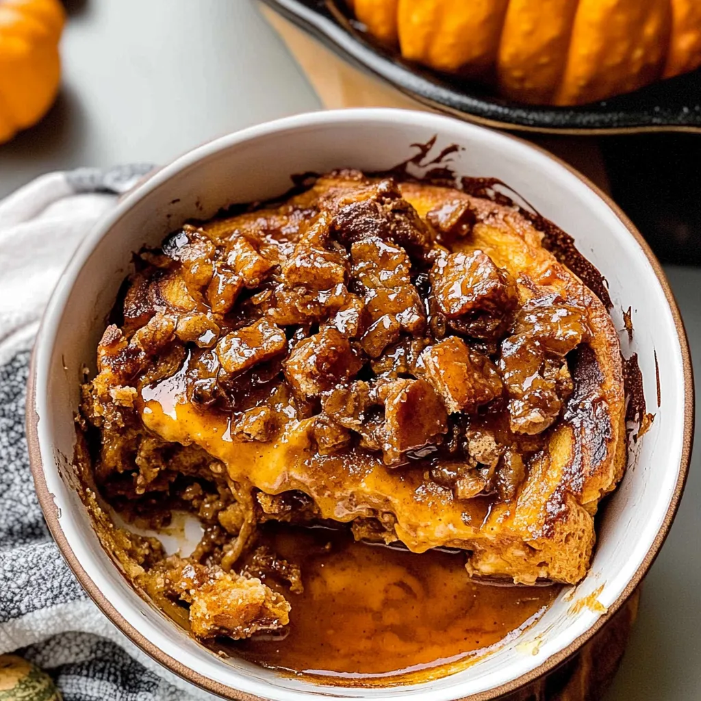 Picture this: your warm, golden Pumpkin French Toast Casserole is all baked and puffy—what an inviting sight! Serve it on a cozy Sunday morning with steaming cups of spiced coffee or apple cider. I love to pair it with crispy bacon or sausage for a delightful savory contrast. And don’t forget the maple syrup; a drizzle will elevate the flavors to heavenly heights! If you’re feeling particularly indulgent, a dollop of whipped cream or a sprinkle of powdered sugar on top is always a welcome touch.
