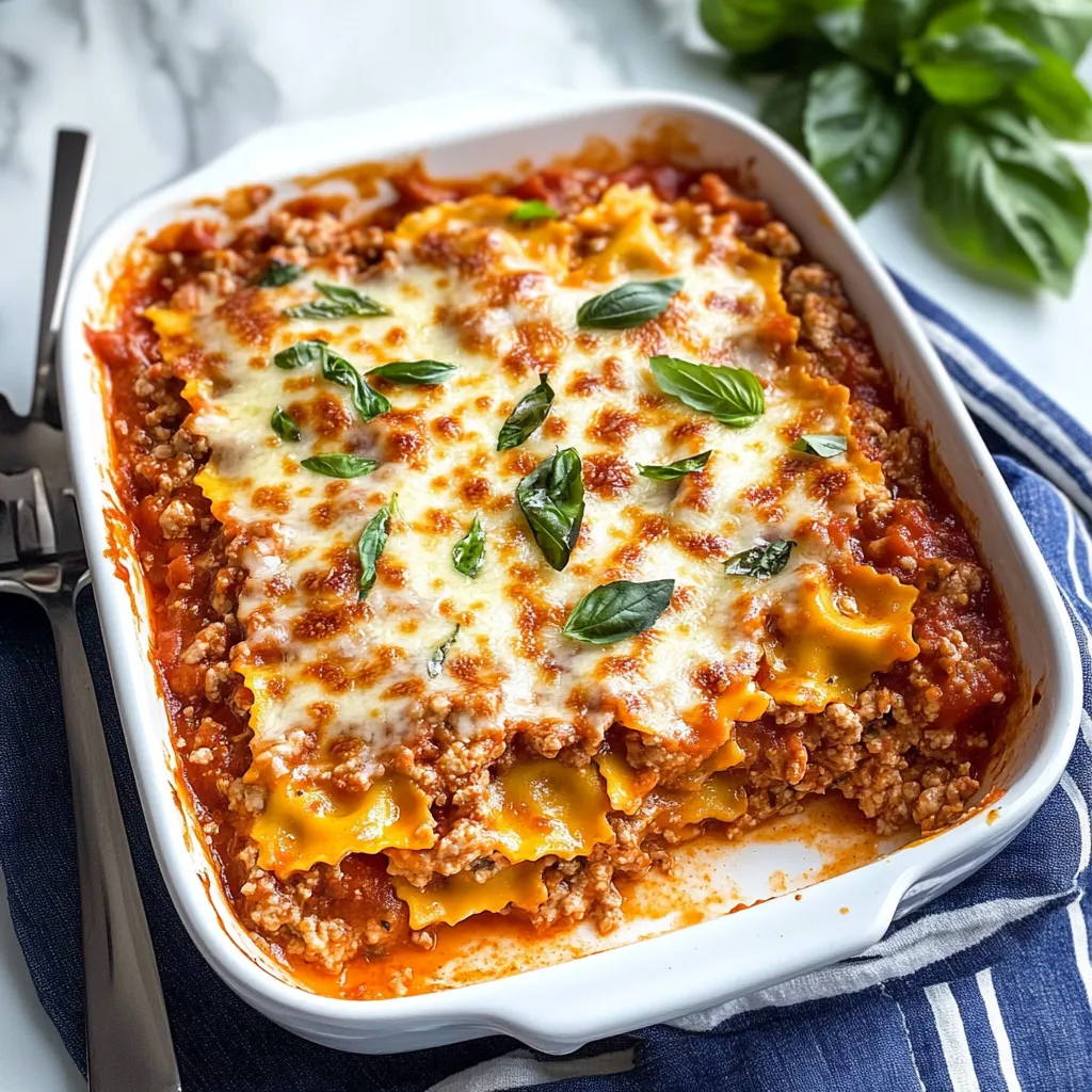 A comforting and easy-to-make Ravioli Lasagna that combines cheese ravioli with marinara sauce and gooey cheese, perfect for weeknight dinners.