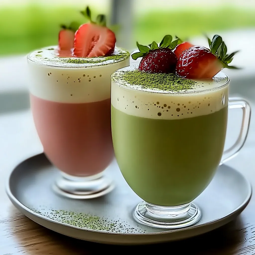 Enjoy a strawberry matcha latte that combines vibrant flavors for a revitalizing boost. Perfect for a refreshing drink on any day! (152 chars)