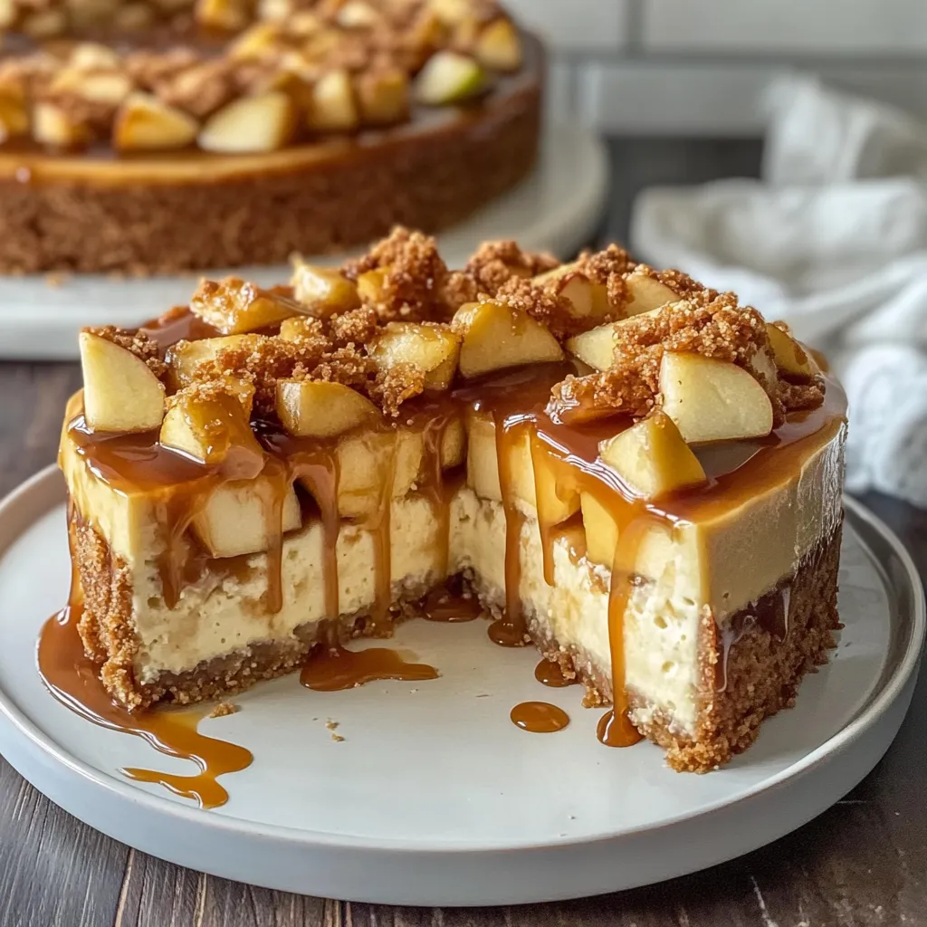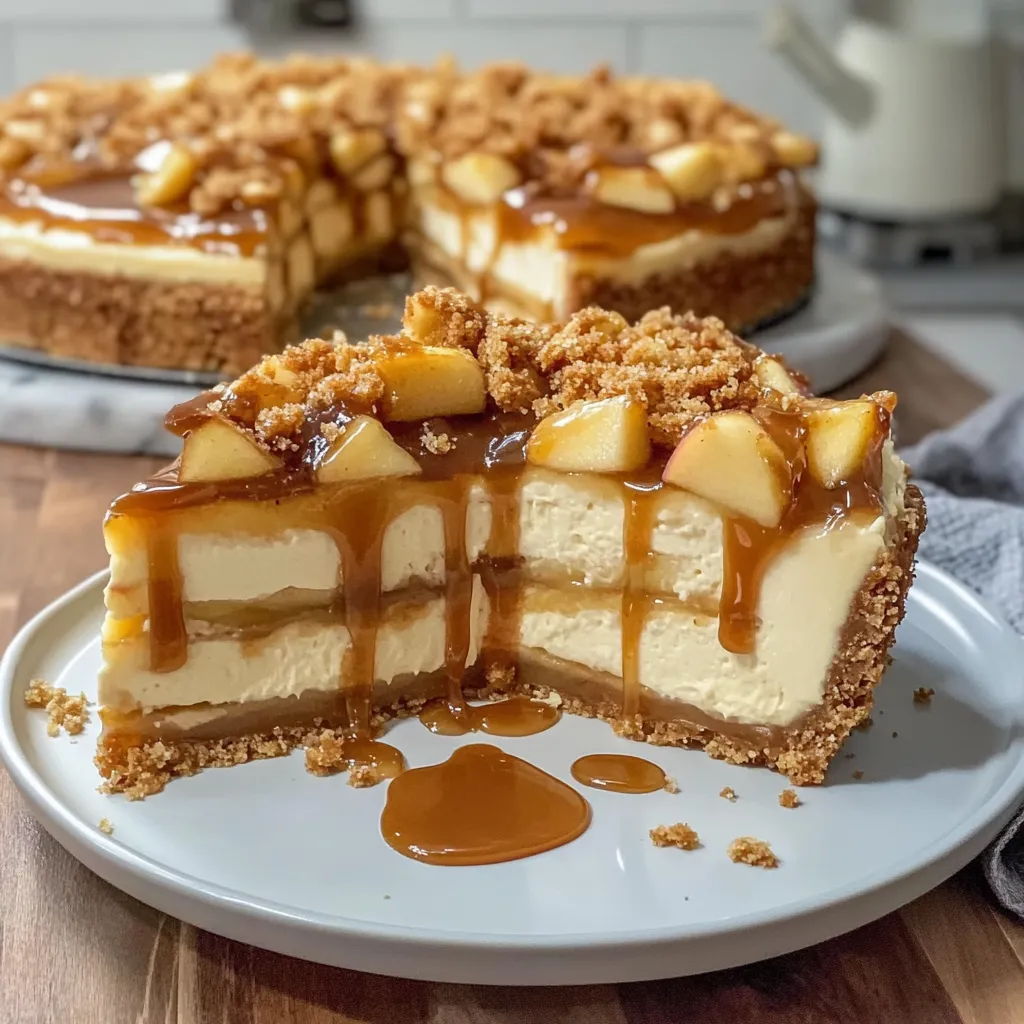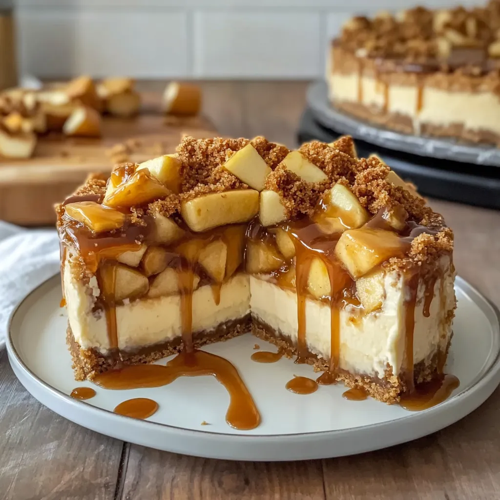 Savor the indulgence of a Salted Caramel Apple Pie Cheesecake Delight with its rich layers of flavor perfect for any dessert lover 145 chars