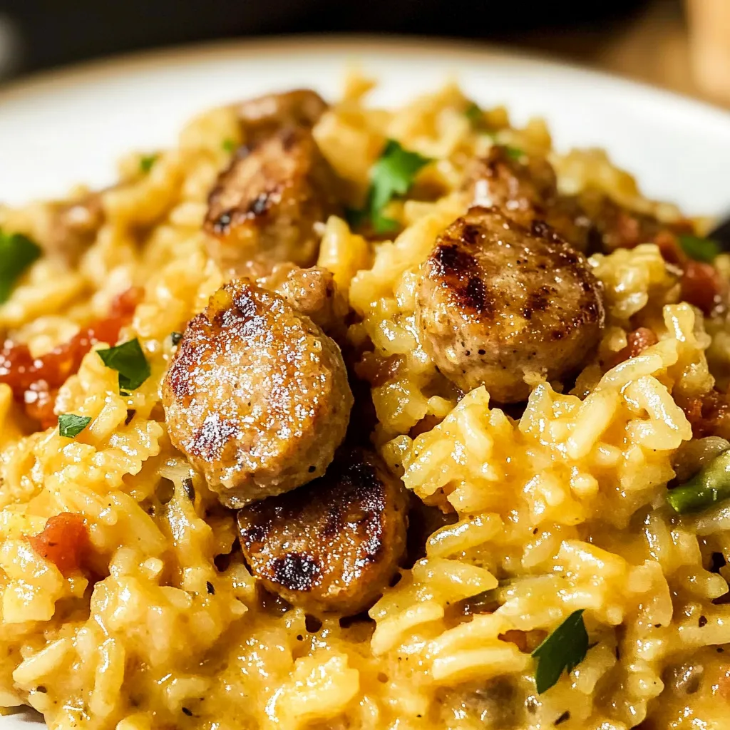 Delve into this sausage rice one pot wonder Quick to prep perfect for busy nights and deliciously satisfying A musttry for easy cooking
