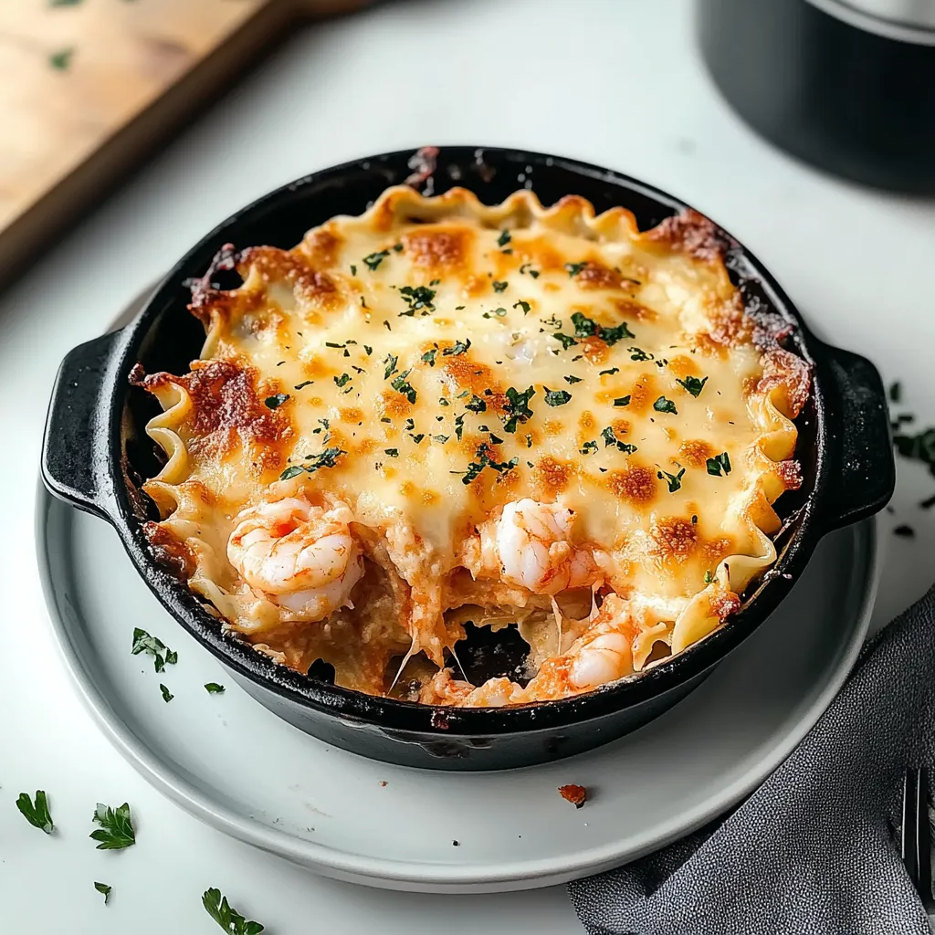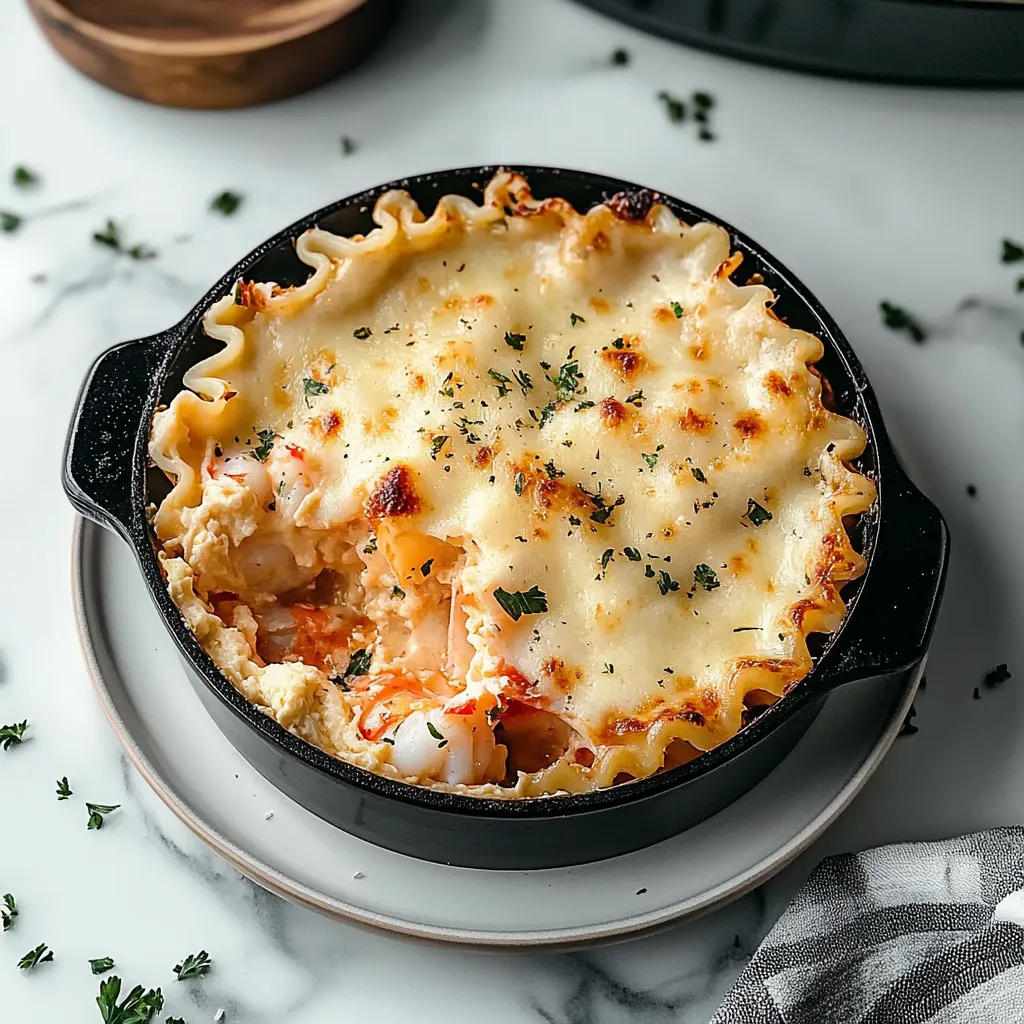 A creamy and delicious seafood lasagna made with lobster and shrimp, perfect for family gatherings and special occasions.