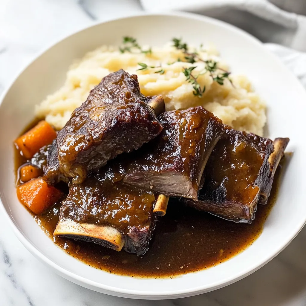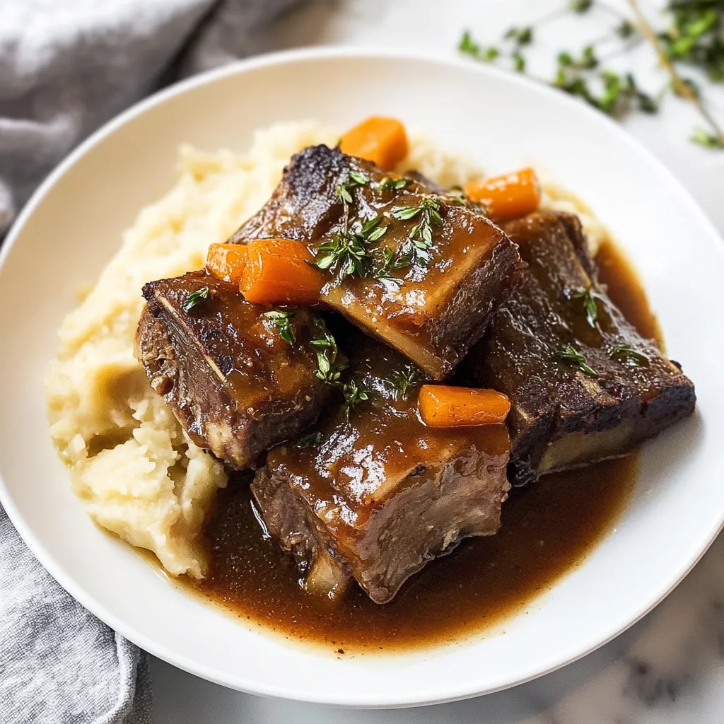 Imagine this: you’ve just pulled the tender short ribs from the slow cooker, and as you plate them up, the sauce glistens under the warm light of your dining table. You could serve them over fluffy mashed potatoes or creamy polenta, letting the rich sauce spill over like a cozy blanket. A side of buttery bread would be the perfect vessel for sopping up every last drop—though honestly, I might just use my fork! Don’t forget a nice glass of red wine to toast the evening with your loved ones. For dessert? Something light, like lemon sorbet or fresh berries, to balance the heaviness of the meal. You’re in for an absolute treat!