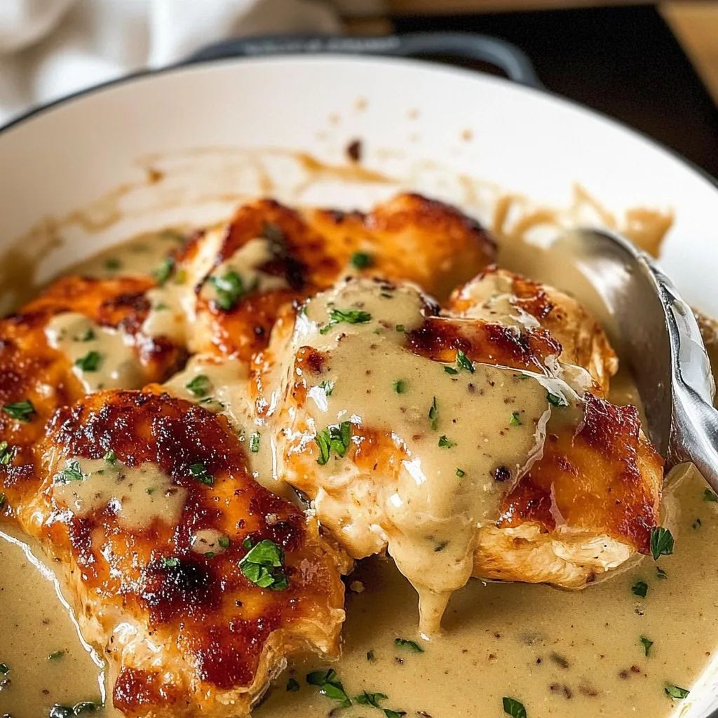 - Return the chicken: Place the chicken back in the skillet, skin-side up. Spoon the gravy over the chicken, then cover and simmer for about 25-30 minutes until the chicken is fully cooked and tender.