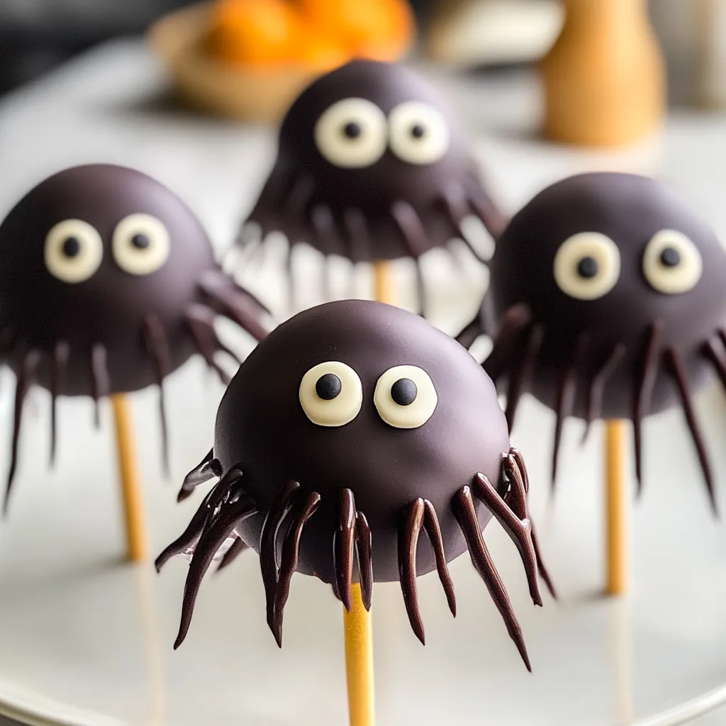 Keywords: Halloween, cake pops, dessert, spooky treats, spider cake pops