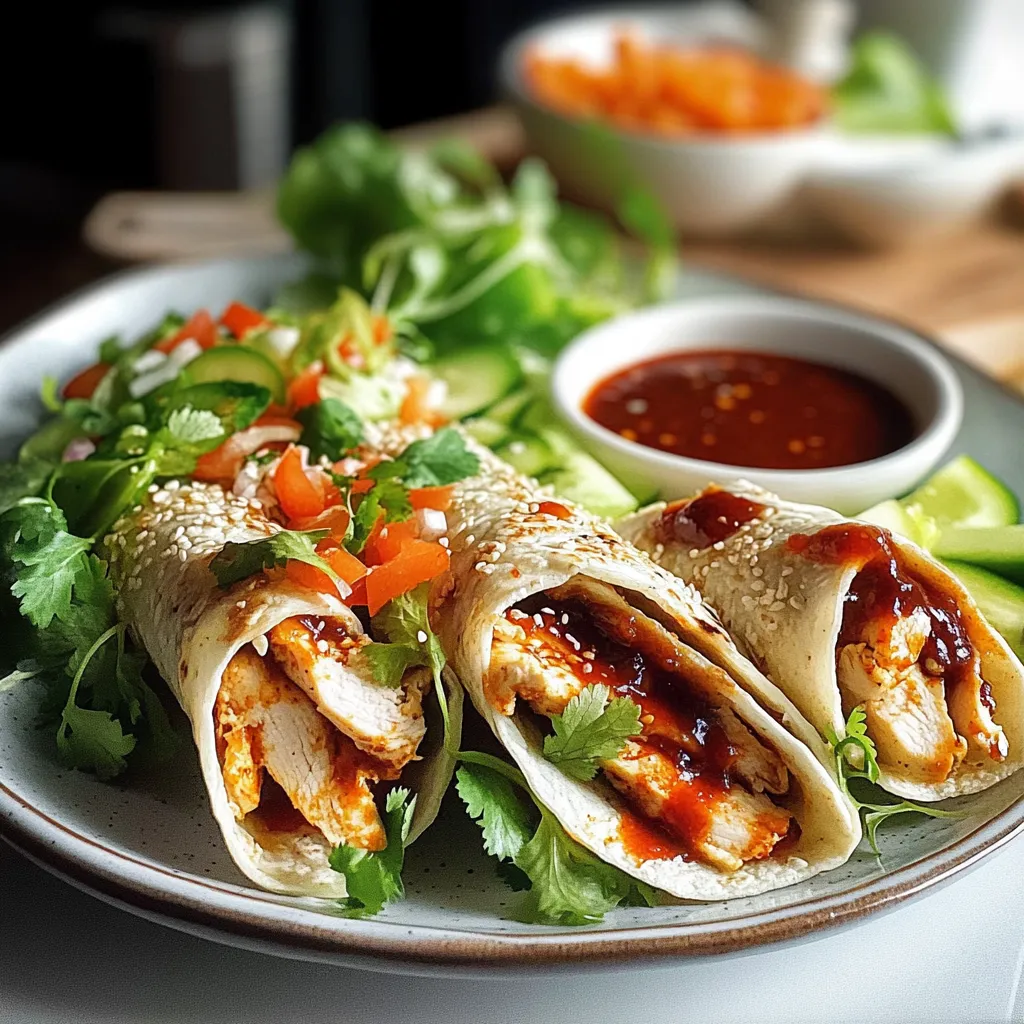 These Sweet Chili Chicken Wraps are absolutely delicious on their own, but how about pairing them with some side dishes? You could serve them with a vibrant side salad, crispy homemade sweet potato fries, or even a bowl of fluffy jasmine rice. And don’t forget a chilled beverage—maybe an iced tea or a refreshing lemonade—to keep that summer vibe alive. Picture this: a plate full of wraps, a colorful salad beside it, and a glass of lemonade that’s just kissed by the sunlight. Perfect, right?
