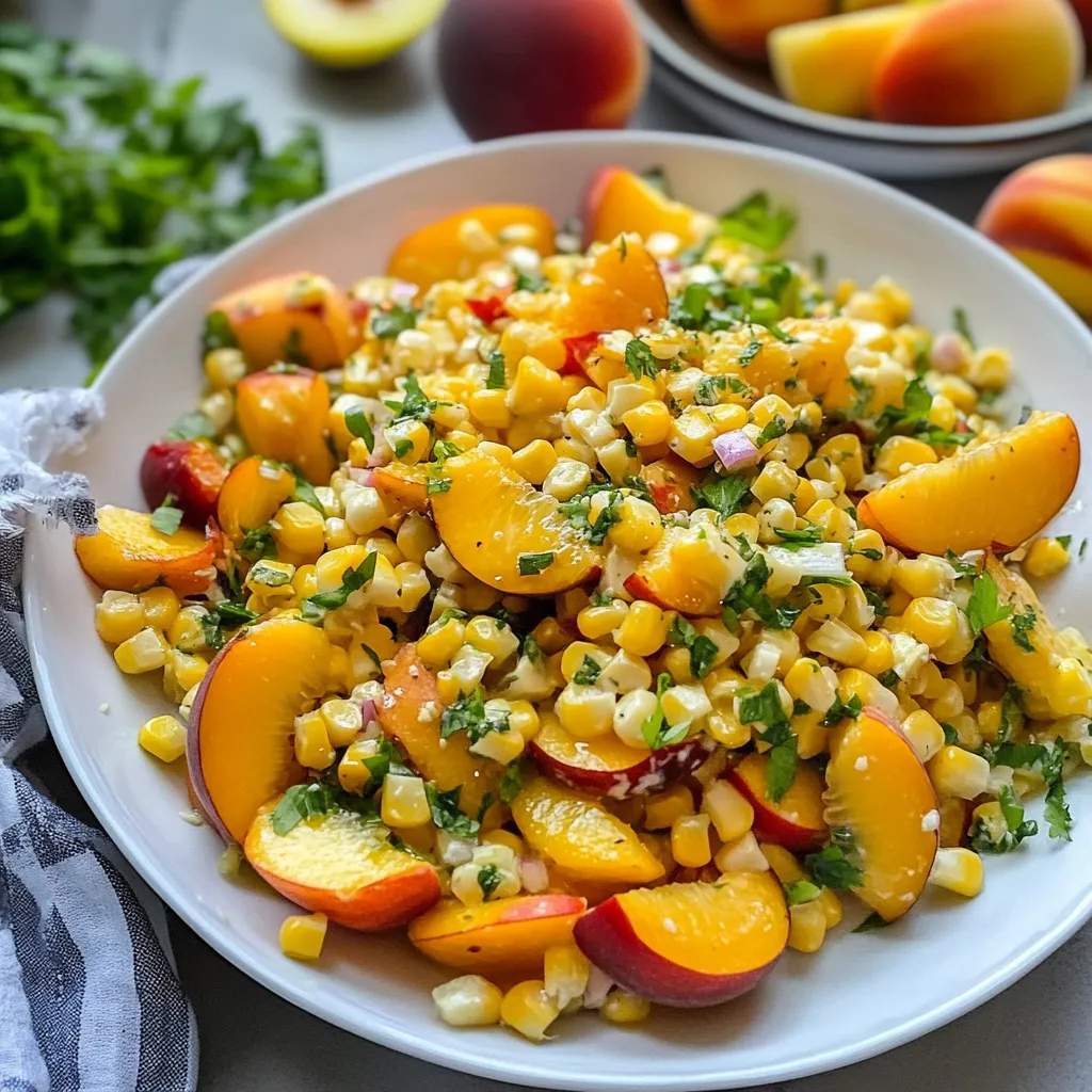 Enjoy a fresh salad featuring sweet corn & peaches. This vibrant dish combines flavors for a perfect summer meal. Try this easy recipe today!